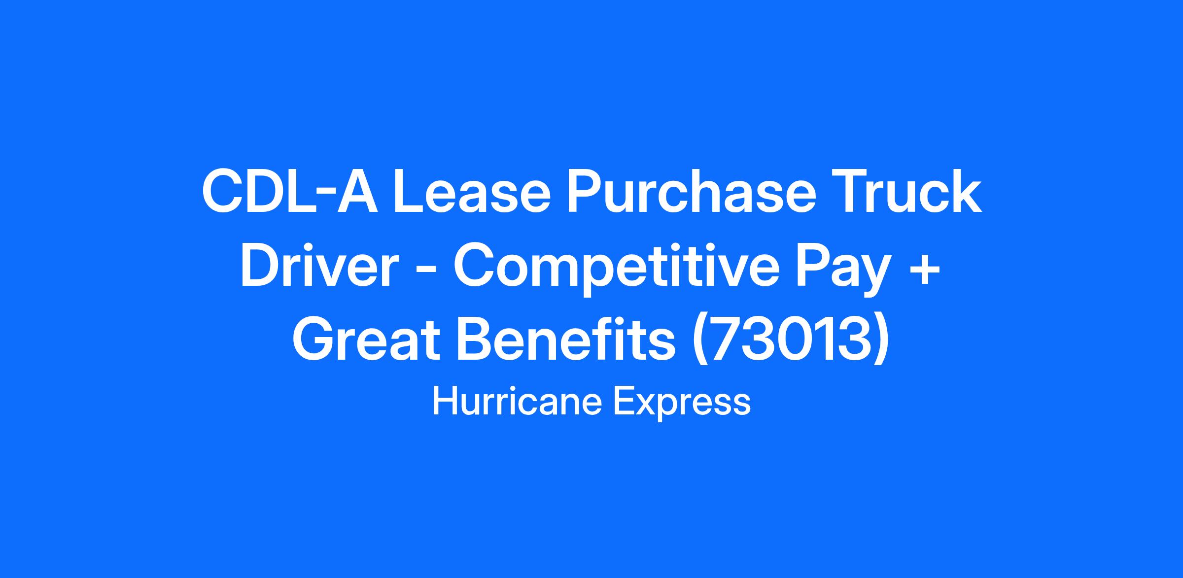 CDL-A Lease Purchase Truck Driver - Competitive Pay + Great Benefits (73013)