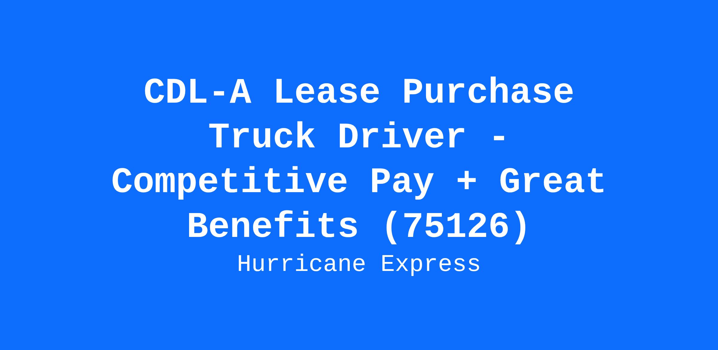CDL-A Lease Purchase Truck Driver - Competitive Pay + Great Benefits (75126)