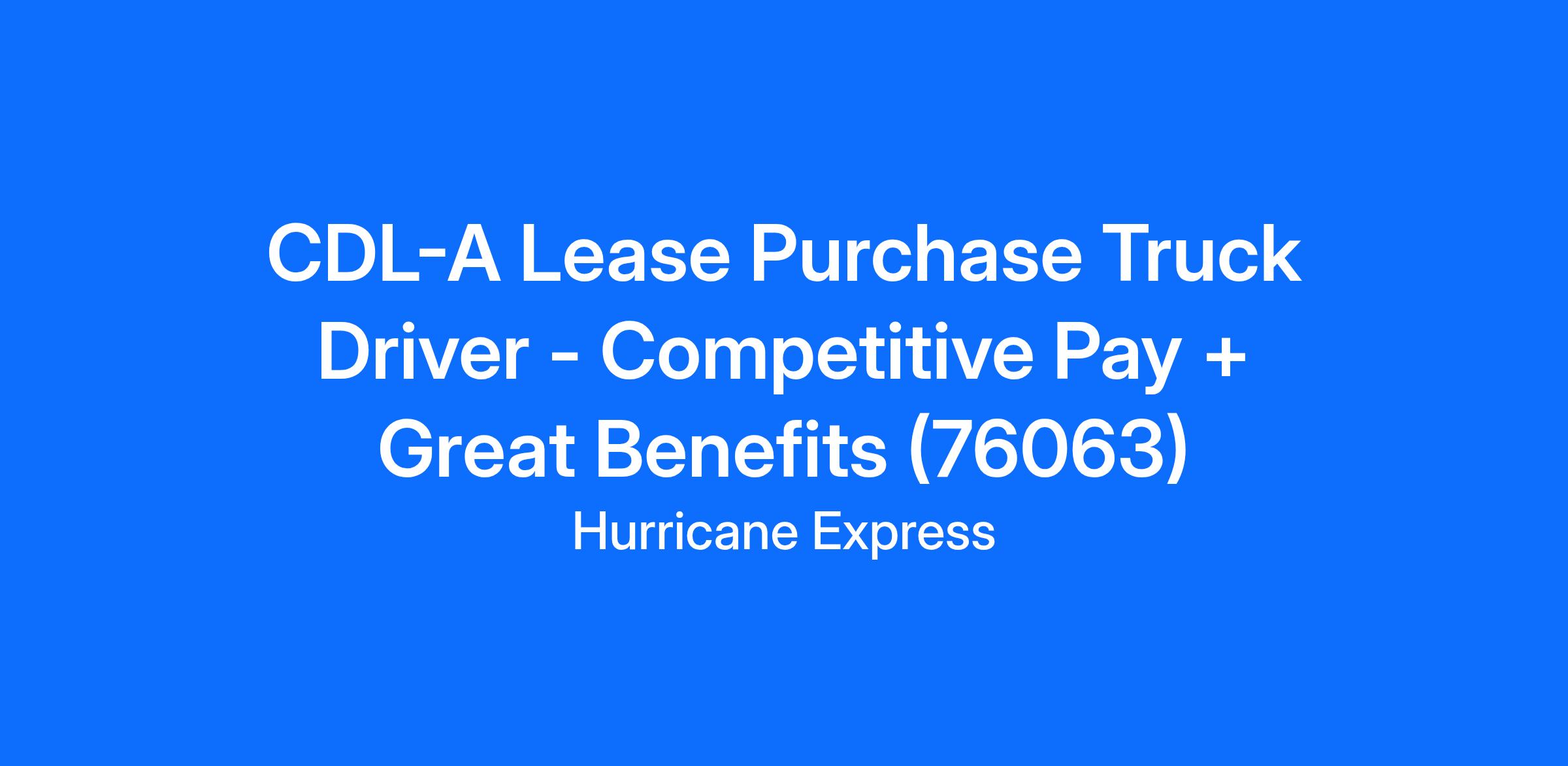 CDL-A Lease Purchase Truck Driver - Competitive Pay + Great Benefits (76063)