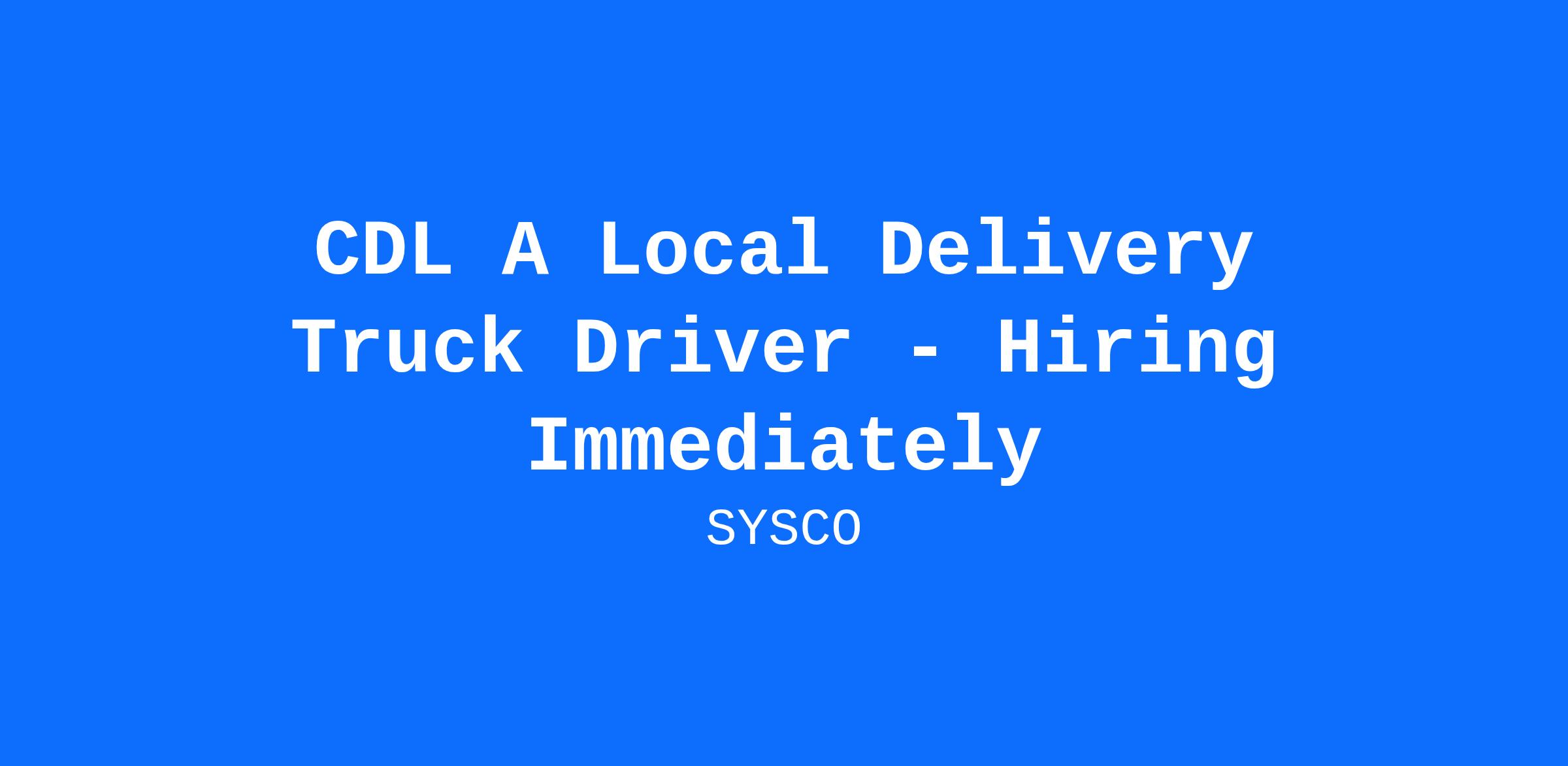 Sysco is more than just a place to work. Our passion for food and our customers has made us the industry leader. To remain on top, we will continue to think bigger, work harder and never give up. It takes a special kind of CDL A Delivery Truck Driver to work for Sysco. Are you ready to drive success?