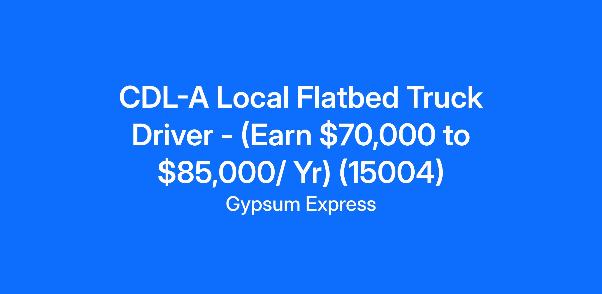 Gypsum Express, headquartered in Syracuse, NY is now hiring Local CDL-A Flatbed Truck Drivers in area.