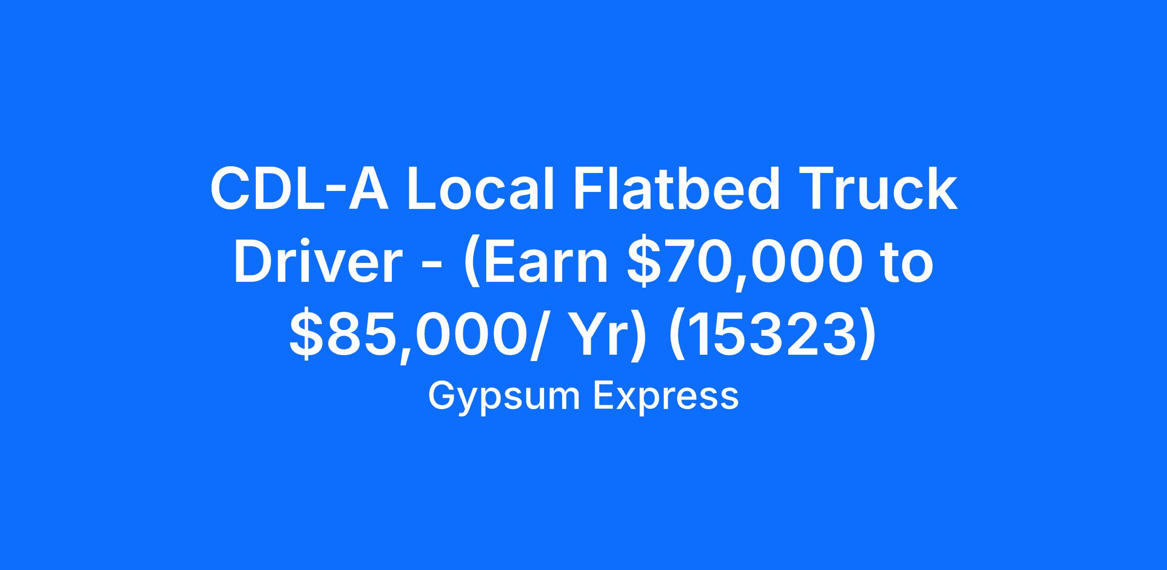 CDL-A Local Flatbed Truck Driver - (Earn $70,000 to $85,000/ Yr) (15323)