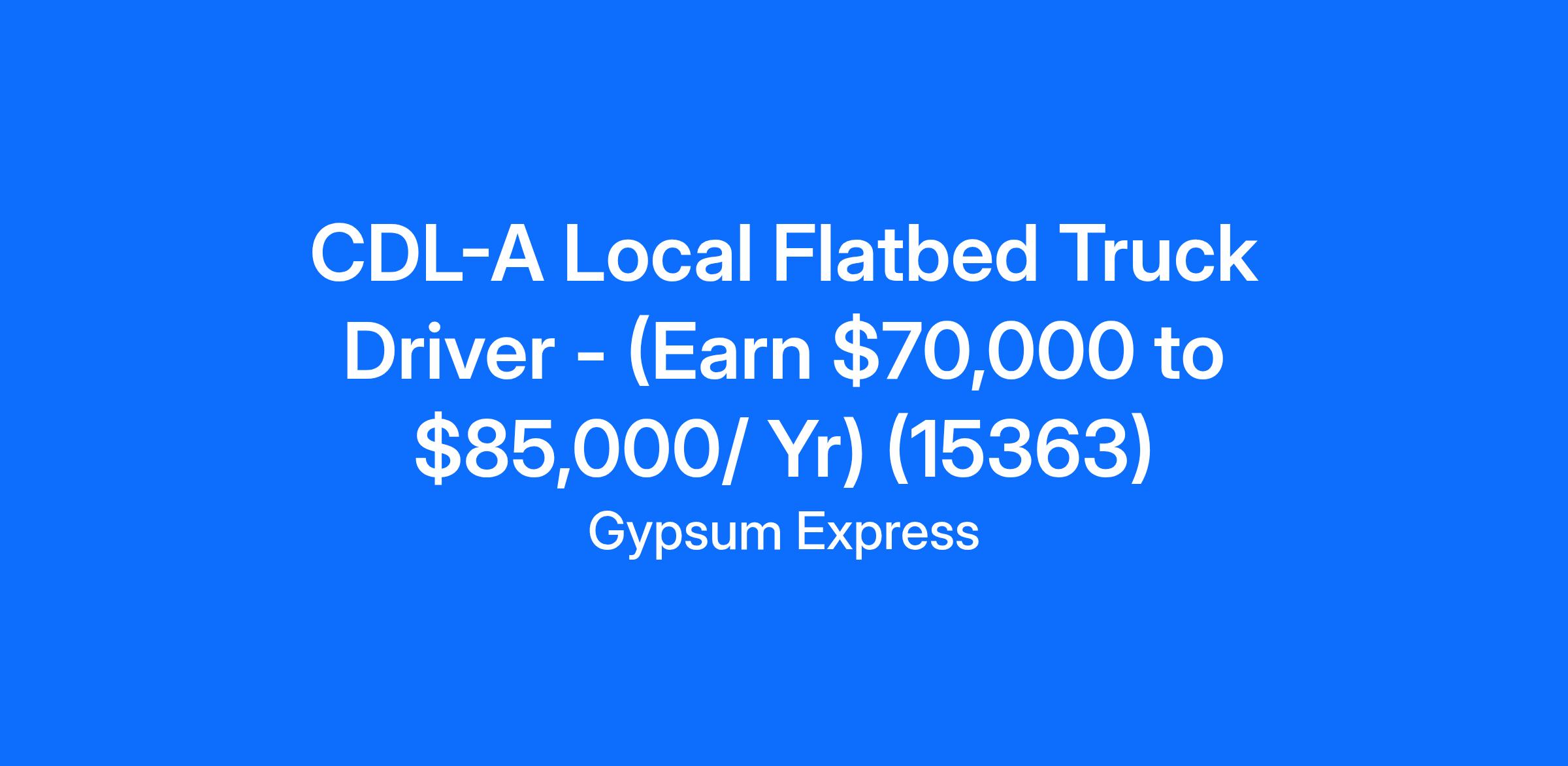 CDL-A Local Flatbed Truck Driver - (Earn $70,000 to $85,000/ Yr) (15363)