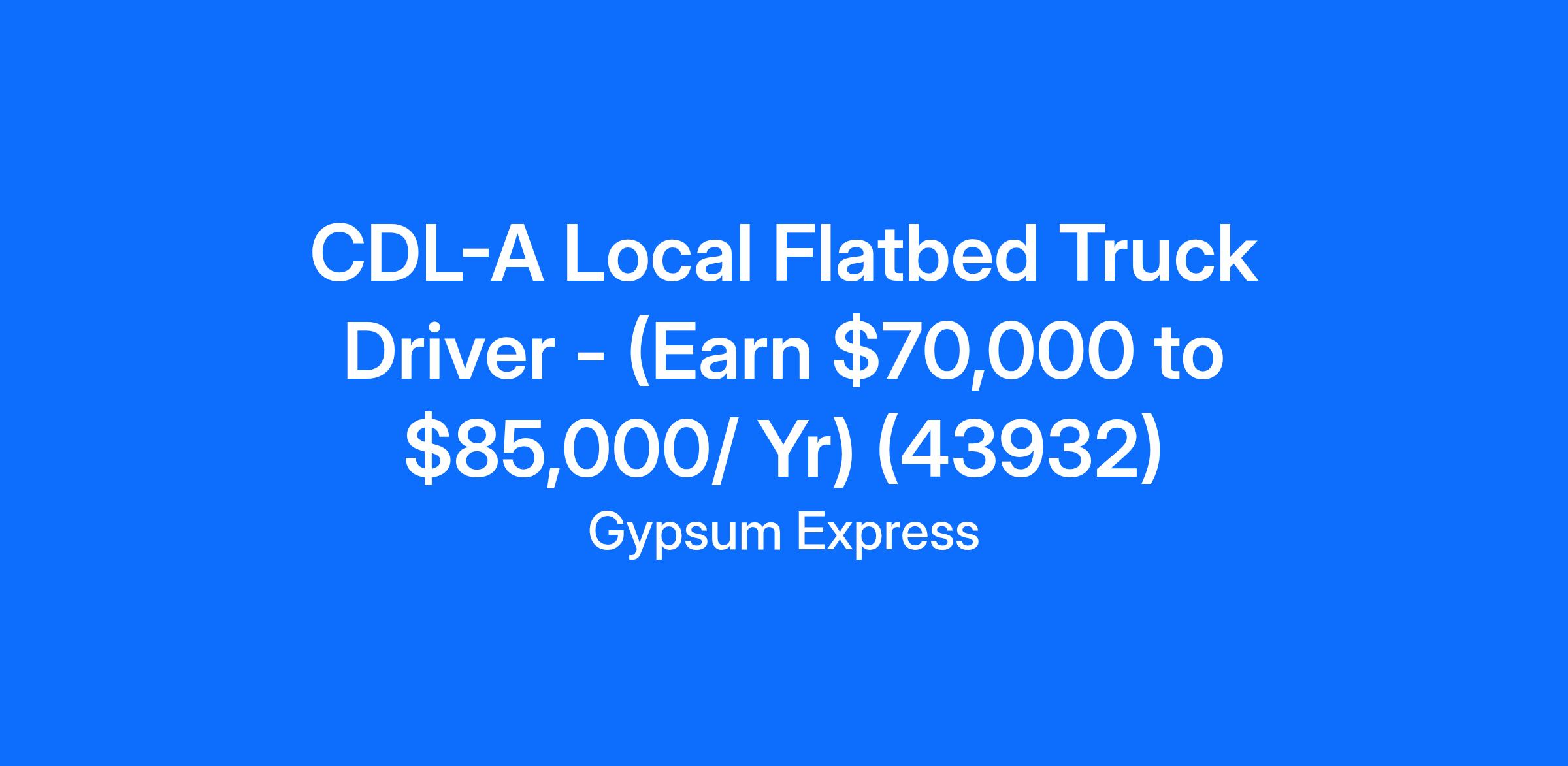 CDL-A Local Flatbed Truck Driver - (Earn $70,000 to $85,000/ Yr) (43932)