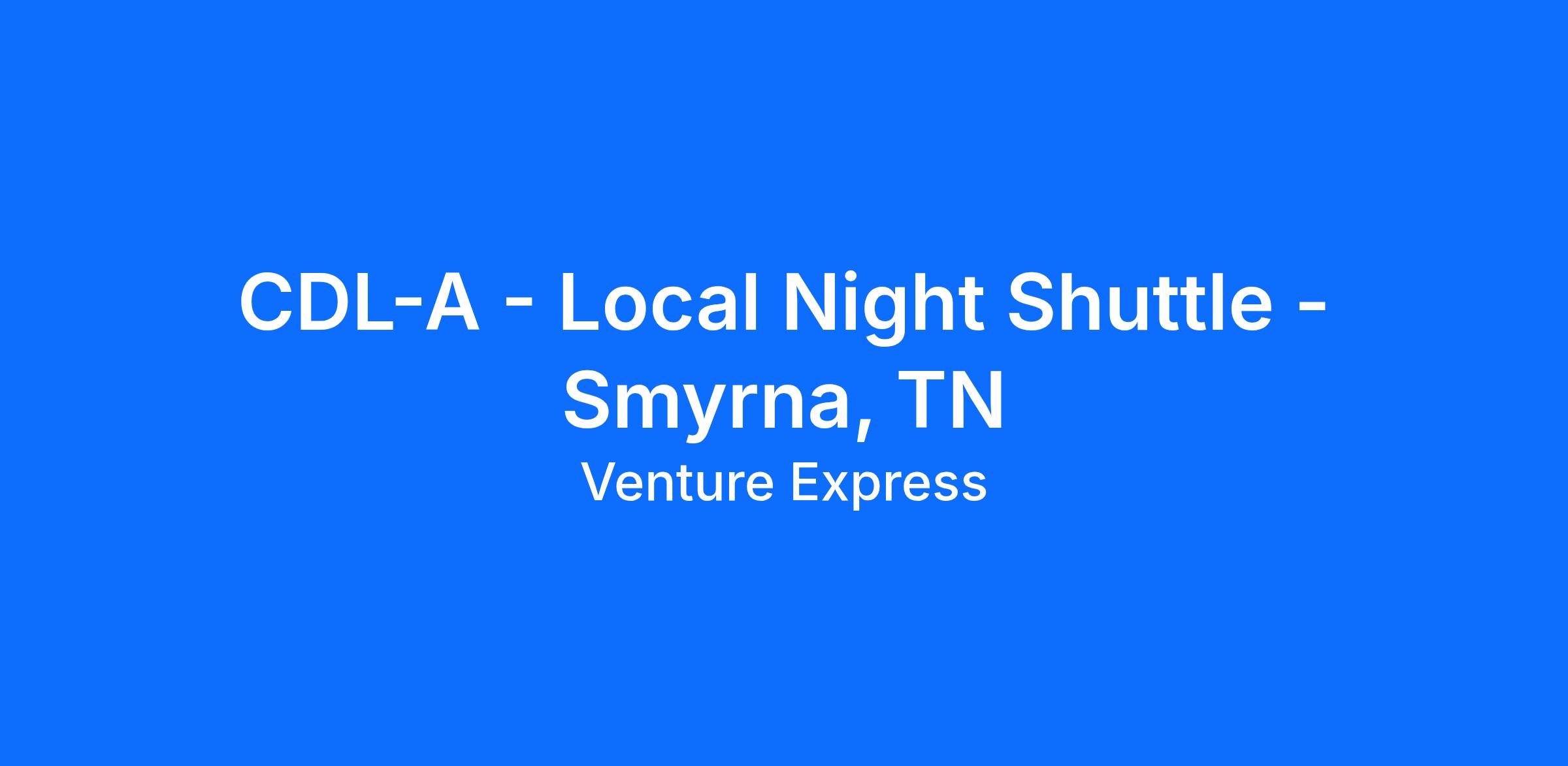 Local/Home Daily - Domicile: Smyrna, TNTerminal: Smyrna, TNLong Description: Two mile shuttle from Nissan to a nearby consolidation center. 10 hour shifts on average. Short Pay Description: Night Shift Shuttle - Starting at $26.00 per hour with a $0.50 increase every 6 months to $28.00 per hour plus OVERTIME.Home Time: Home DailyPay DetailsStarting at $26.00 per hour with a $0.50 increase every 6 months to $28.00 per hour plus OVERTIME.Holiday Pay is $160 per day, eligible after 60 days of employment.$0.50 per mile Safety Bonus eligible, paid monthly. Safety Bonus is subject to successfully completing all Safety Bonus eligibility requirements.Anniversary bonus of $1,200 paid after each year of service6th day may be required when requested by our customerThis position is exempt from overtime pay pursuant to Section 13(b)(1) of the Fair Labor Standards Act (FLSA)Operational DetailsDedicated customers with consistent routes supporting the automotive industryDrop and hook no touch freightSlip Seat PositionMultiple start times are available to fit your scheduleAdvanced technology for electronic logs and dispatchInward/Outward facing camerasNo Rider and No Pet PolicyBenefits:Weekly direct deposit3 Blue Cross/Blue Shield of TN medical options to choose from starting as low as $30.00 per week for single coverage & $85.00 per week for familyIndividual and family medical plans available with multiple tiersHSA and FSA account optionsDental and vision plans with DeltaCompany paid life insurance of $25,000Two-day in class paid orientation, lunch provided. Third-day Ride-A-Long at home Terminal401K retirement planWork Life Matters Employee Assistance ProgramVoluntary enrollment options for disability, accident and critical care insurance policies availableCoverage for benefit plans are effective on the first of the month following 60 days of employment Qualifications:Must have a valid Class A CDL Interstate drivers license.Must pass a DOT physical from one of our chosen FMCSA qualified clinics.Must pass a pre-employment drug screen.Must be able to operate a CMV on public roadways.Must be 23 years or older.No Felony convictions, pled "guilty" to or "No Contest" to crimes involving violence, dishonesty or drugs in the past 10 years.No failed DOT drug or alcohol tests. No Refusals. No Applicants from SAP Program.No DUI convictions, open container, or alcohol related incidents in previous 7 years.No Careless driving or reckless driving convictions on MVR or PSP in the previous 3 years.No at fault rear end collisions, rollover accidents, or jackknife accidents in the previous 3 years.12 months experience in the past 3 years pulling a 53 ft van if for van fleet of which 12 months.No more than a combination of 3 qualifications below: No more than 2 at fault accidents in the previous 3 years and No more than 2 moving violations in the previous 3 years.An acceptable PSP report; Combination of 4 or more violations, inspections, or warnings MUST be reviewed and approved by safety.No speeding convictions of 15 mph or more over the posted speed limit in the previous 3 years.Required to have 10 years of experience filled out; If there is a gap of 6 months or more of employment, then we must have a signed Employment of Declaration document.Verify 3 years of Class A CDL driving experience.Three or more jobs in the last 12 months goes to auditNo convictions for using a handheld device while driving subject to state and/or federal lawMust be able to pass a road test administered by Venture ExpressMust meet all qualifications in section 391.11 of the FMCSA regulations handbookPrimary residence must be within: (Home Daily/Local) a 50-mile commute from the Domicile assigned on hire date. (OTR/Regional) a 100-mile commute from the Domicile assigned on hire date. About Venture Express, Inc.Venture Express, Inc. wants a team of world-class Company Drivers like you, and that's exactly the way you deserve to be treated. Whether you live for the open highways or the city streets, adventuring for days, or coming home every night, Venture Express, Inc. has a career opportunity as a company truck driver suited perfectly for you. You will be recognized and rewarded for your accomplishments as a professional company truck driver while operating top-notch equipment. Are you ready to start your driving career with Venture Express Inc.? We invite you to FUEL your Class A CDL career with Venture Express, Inc. today. Venture Express, Inc. is an equal employment opportunity employer. As such, Venture Express, Inc. offers equal employment opportunities without regard to race, color, religion, sex (including pregnancy), national origin, age, disability, genetic information, veteran status, or any other status protected by law. These opportunities include all terms, conditions and privileges of employment, including but not limited to recruitment, selection, hiring, job placement, training, compensation, discipline, discharge, advancement and termination. Venture Express, Inc. does not give hiring preference to applicants based on the previously listed characteristics.