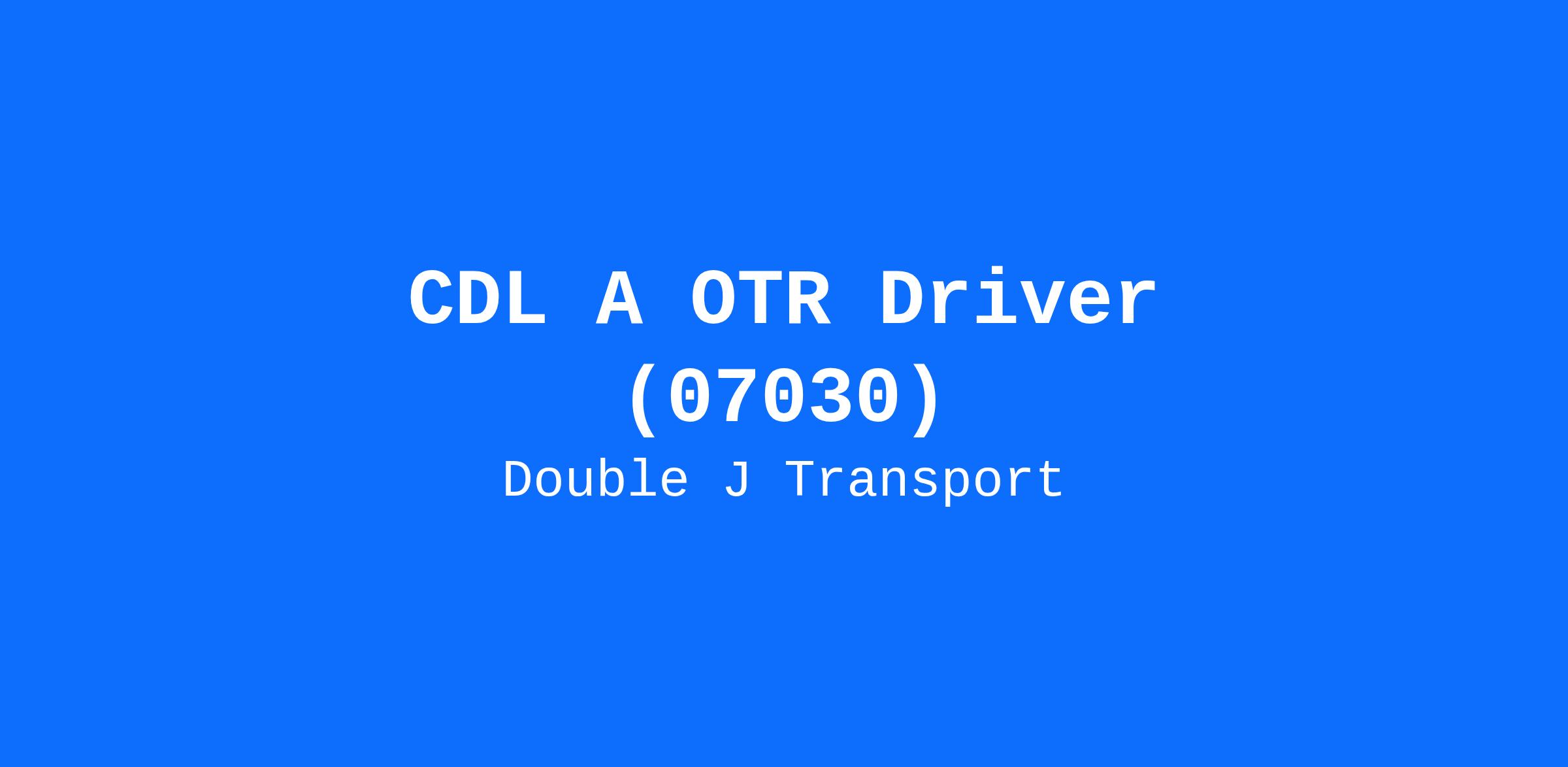 CDL A OTR Driver (07030)