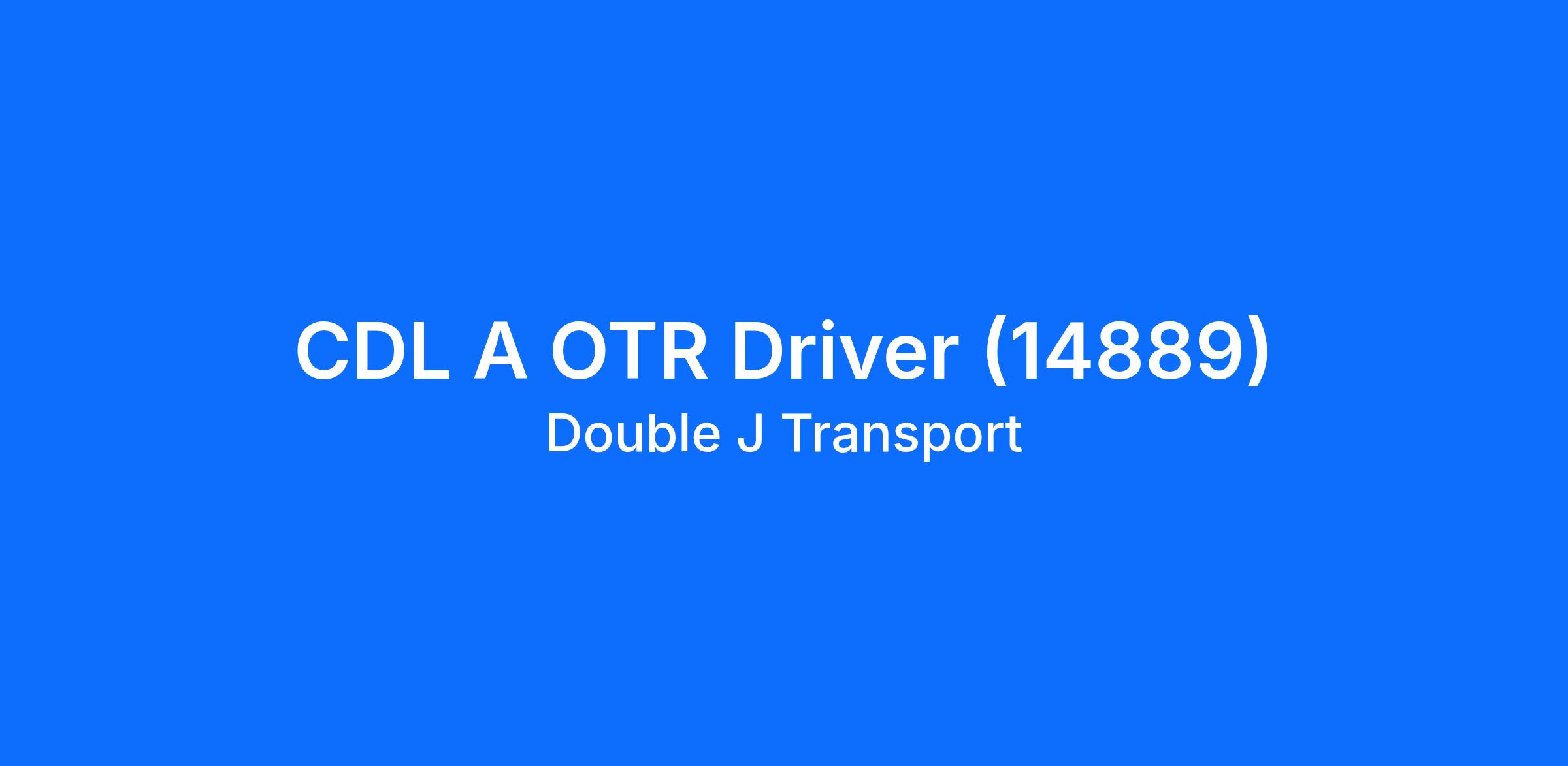 CDL A OTR Driver (14889)