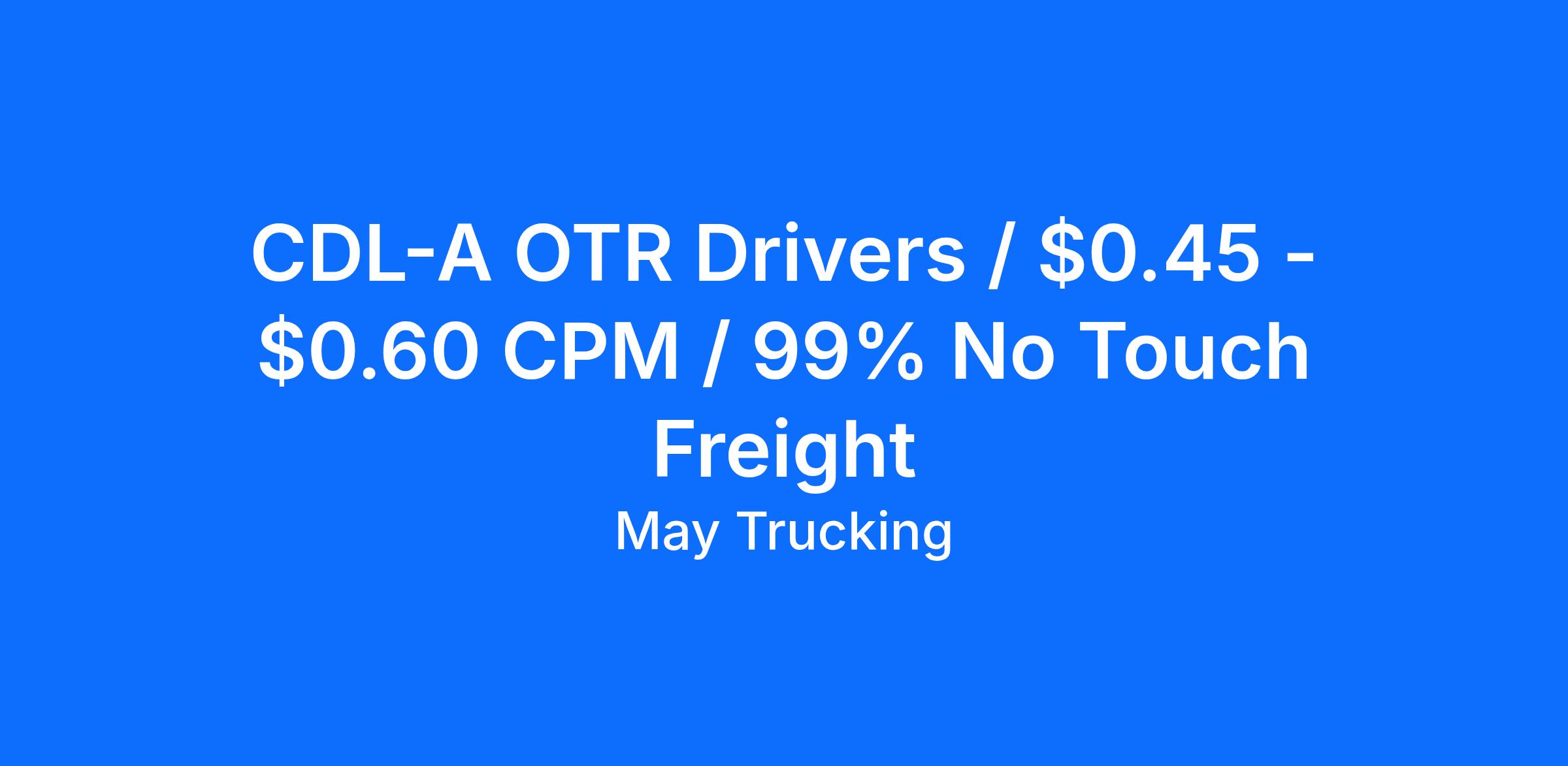 CDL-A OTR Drivers / $0.45 - $0.60 CPM / 99% No Touch Freight