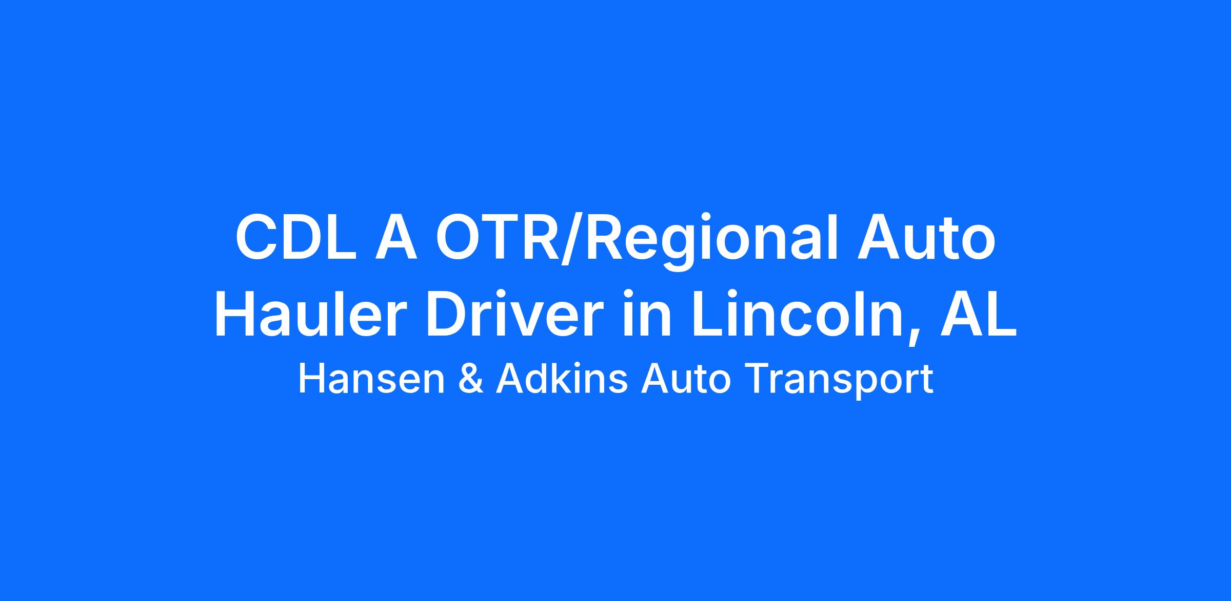 CDL A OTR/Regional Auto Hauler Driver in Lincoln, AL to join our team and make deliveries within the following service area: GA, SC, NC, parts of FL. One year of verifiable tractor trailer driving experience is required and
