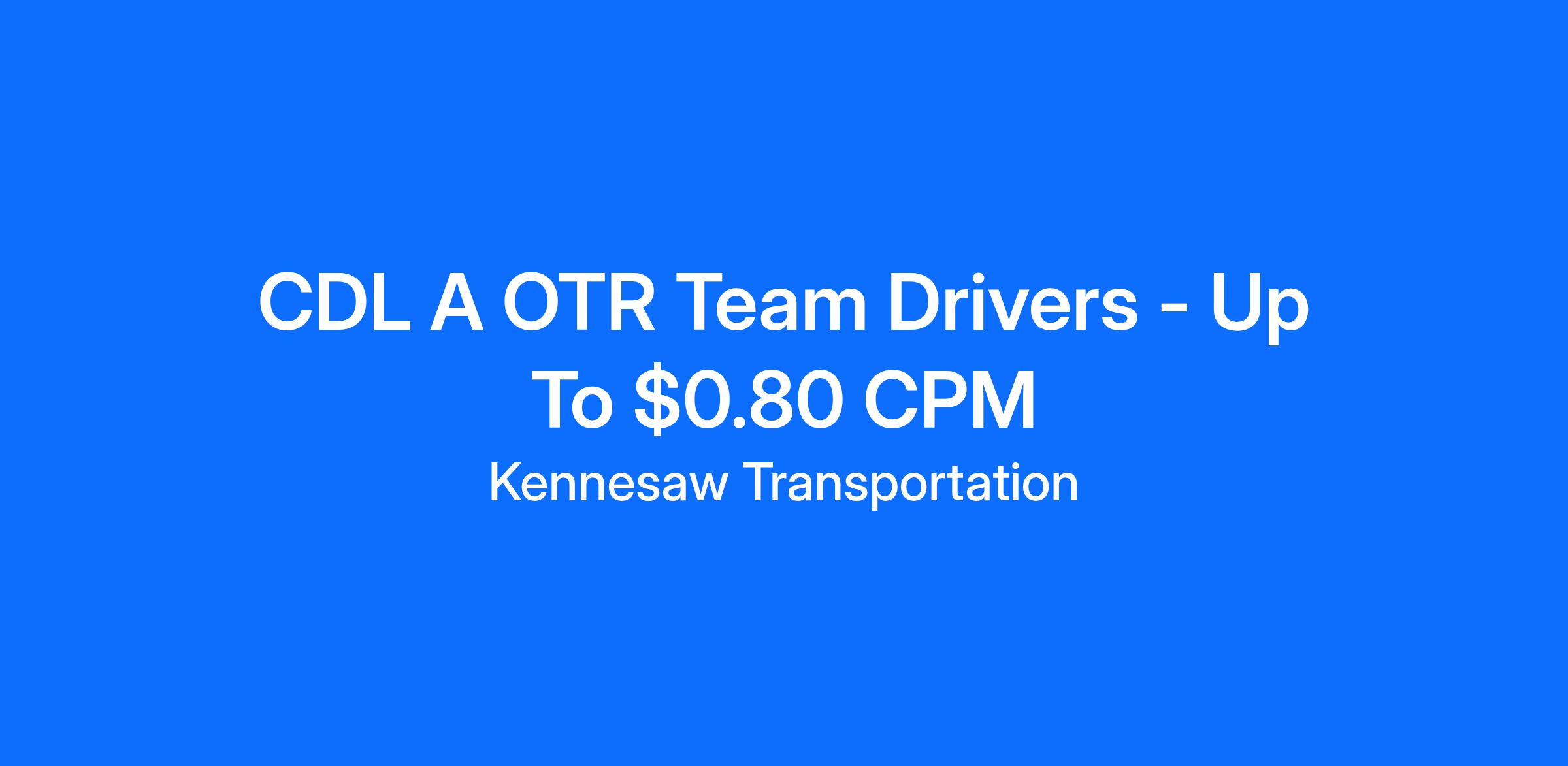 CDL A OTR Team Drivers - Up To $0.80 CPM