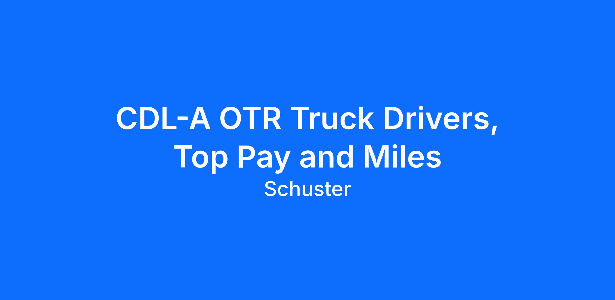 With 60+ years of success behind us, Schuster is looking ahead to even more outstanding opportunities for CDL-A over-the-road truck drivers hauling refrigerated freight such as meat and ice cream. Join Schuster and enjoy a support system that treats you like family and prioritizes you as a professional. Learn more about apply today or call 844-###-####! CDL-A OTR Truck Drivers Enjoy: Pay is between $85,000 - $90,000 per year .02 CPM increase after 90 days 2,000 2,500 weekly miles Run all 48 lower states typically 14-17 days out, home 2 varies based on location 50/50 drop and hook/live load and unload Paid Orientation & $1,500 Referral Bonus $50 East coast pay $40 per billable stop charge Veteran recognition Pet & rider friendly! Health, dental, vision, & life insurance Wellness program 401(k) with company contribution Open Door Policy Requirements: Valid Class A CDL 21 years of age 1 year of recent tractor-trailer experience No more than 1 violation in the last 3 years (with no serious violations, suspensions, or DUIs within the last 5 years) No more than 3 previous driving jobs in the last year Pass DOT Physical, Drug and Medical Join the Schuster family today! APPLY NOW or CALL 844-###-####