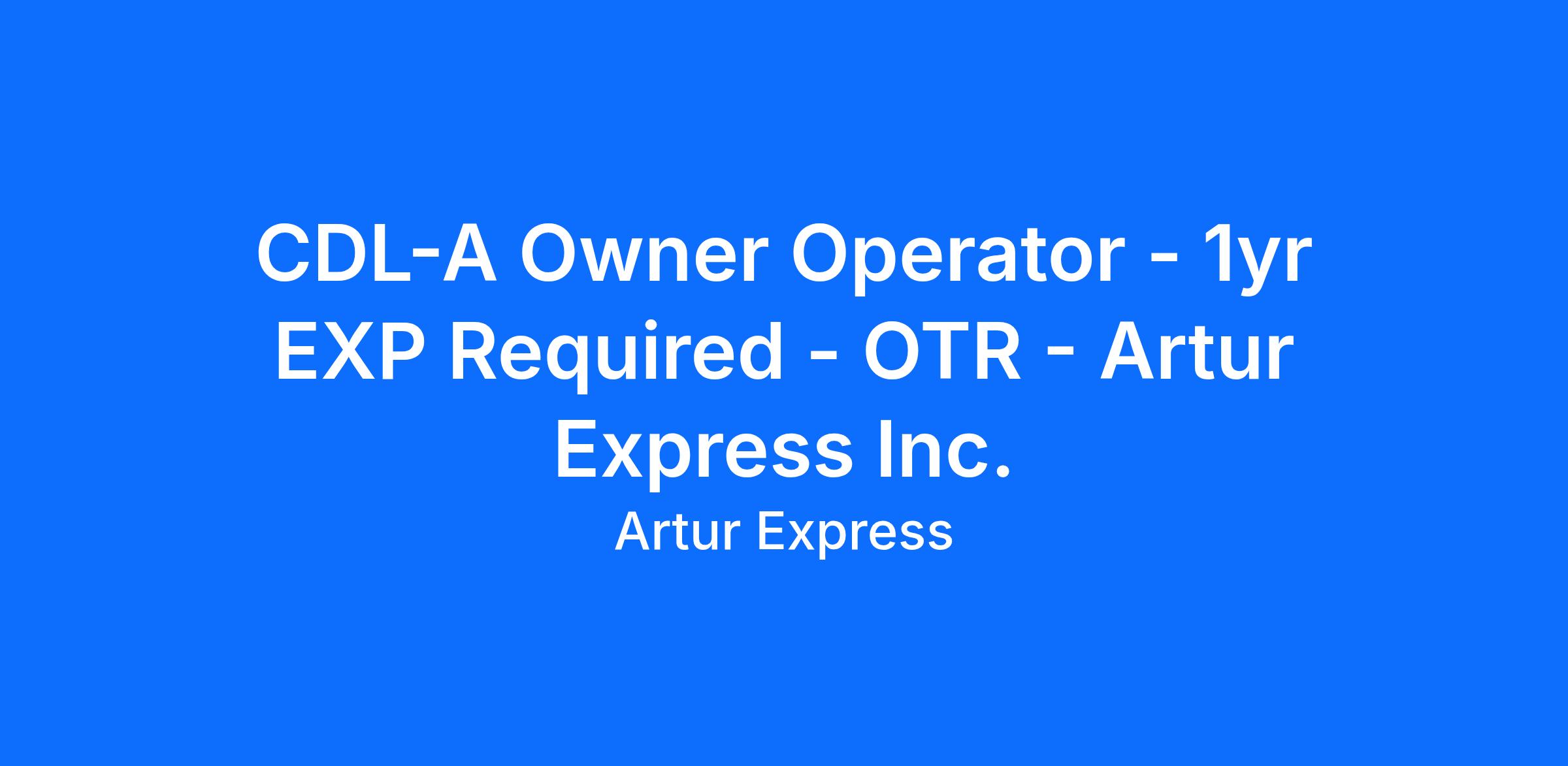 CDL-A Owner Operator - 1yr EXP Required - OTR - Artur Express Inc.