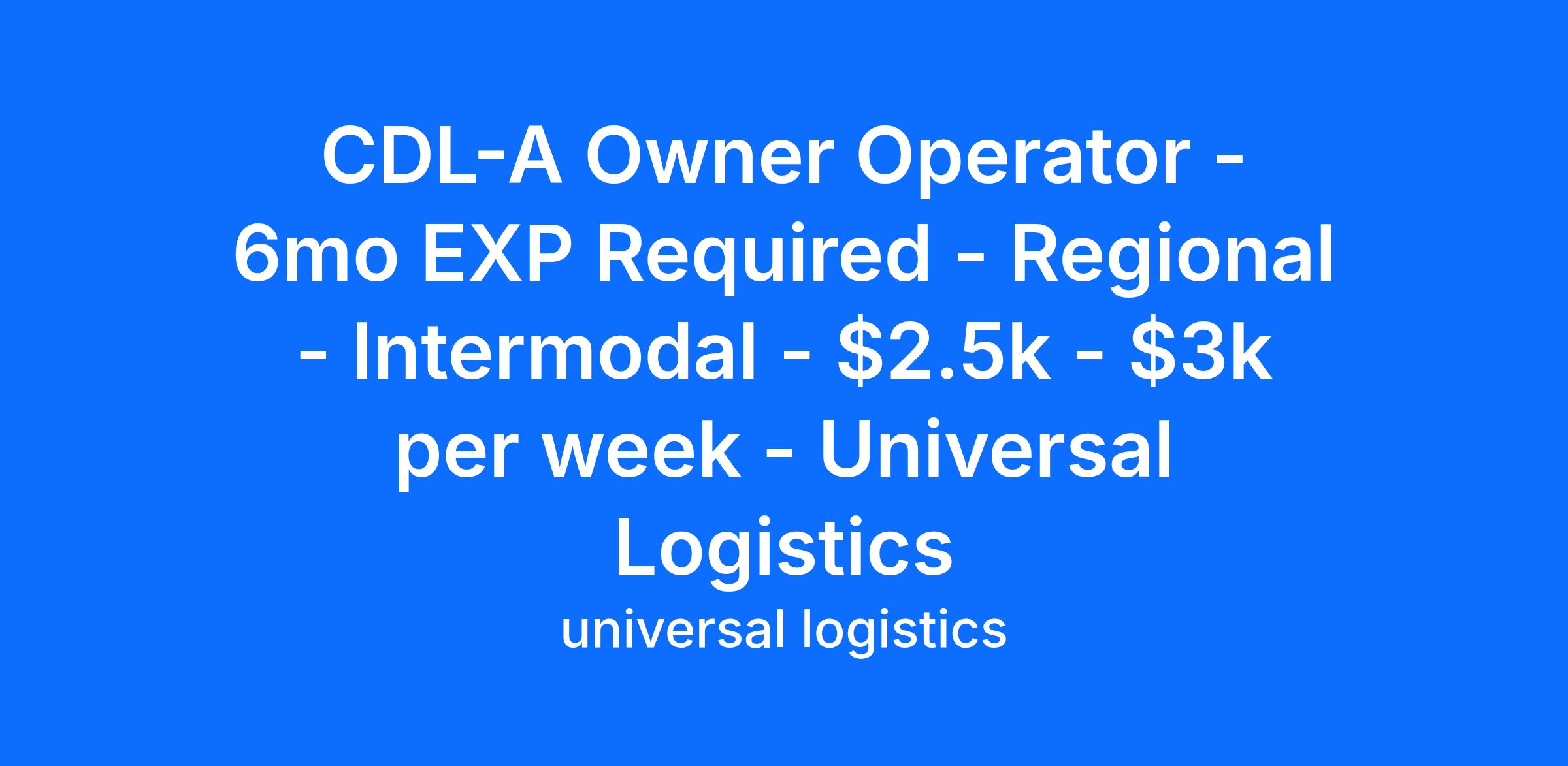 CDL-A Owner Operator - 6mo EXP Required - Regional - Intermodal - $2.5k - $3k per week - Universal Logistics