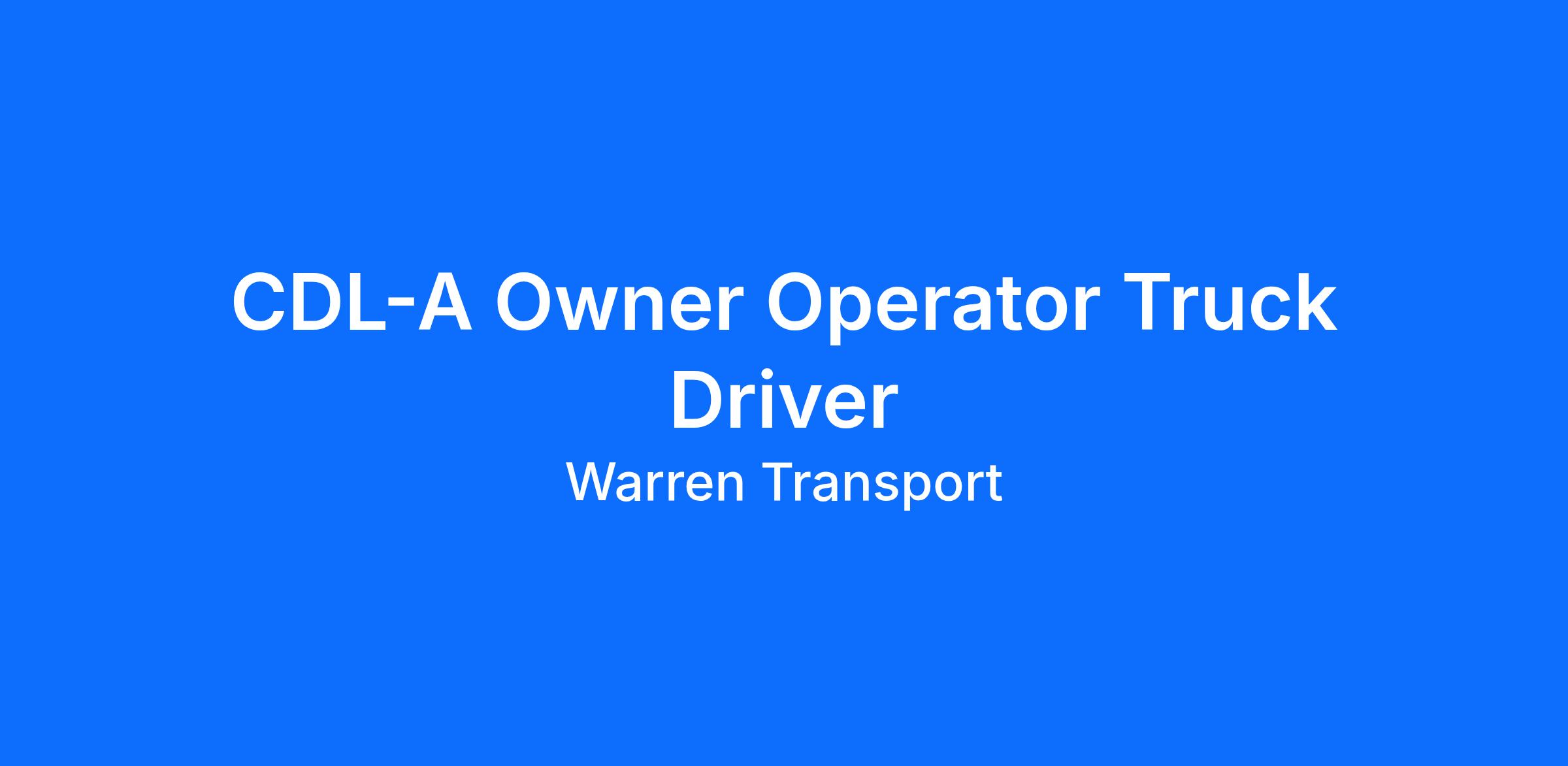 CDL-A Owner Operators - Run Your Business with Warren Transport