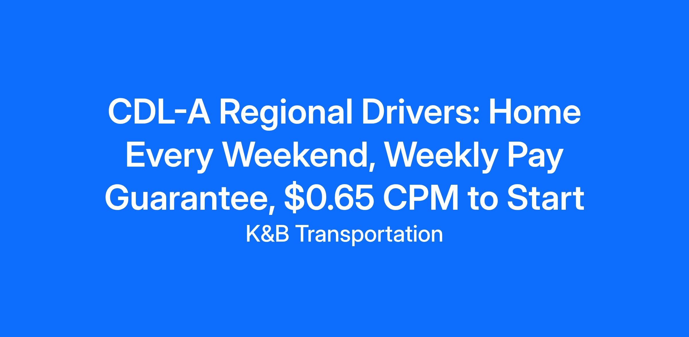 Are you looking for a top paying driving job that gets you home on weekends? K&B Transportation has home every weekend positions in select upper Midwest cities! Our drivers start at 65 CPM and earn $70,000 annually