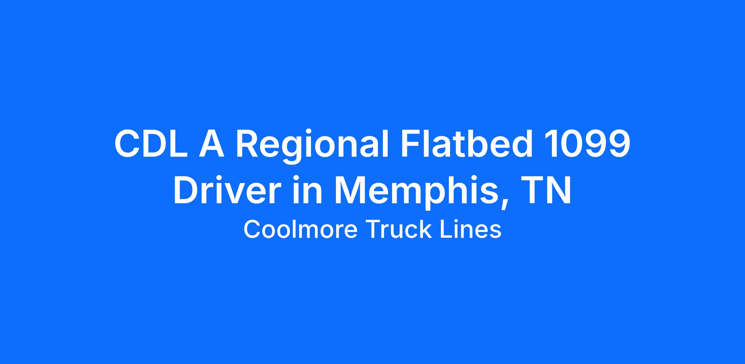 CDL A Regional Flatbed 1099 Driver in Memphis, TN. Drivers will be primarily hauling steel coils for a dedicated customer in the southern states. Coolmore Truck Lines is looking for professional and qualified drivers to grow our team. When you drive with Coolmore, you're backed by quality equipment, real support, and a dispatch team that understands your grind.