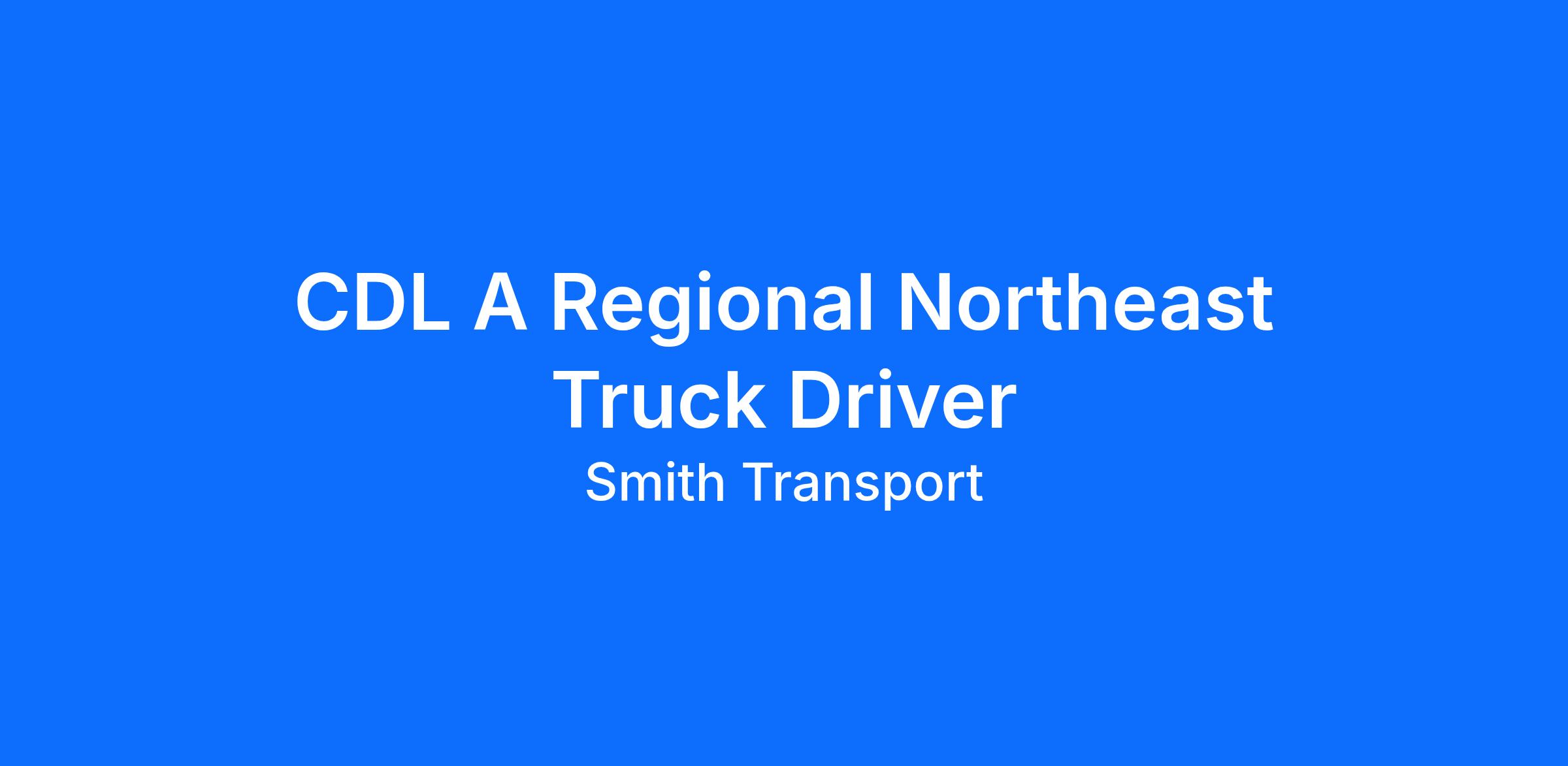 CDL-A TRUCK DRIVER - NORTHEAST REGIONAL