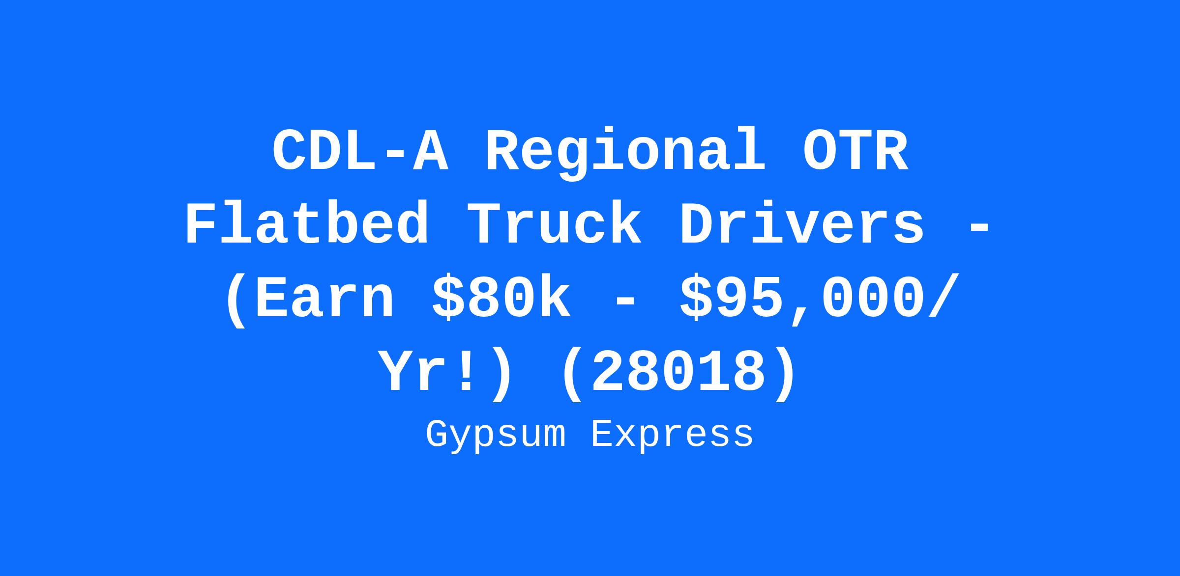 CDL-A Regional OTR Flatbed Truck Drivers - (Earn $80k - $95,000/ Yr!) (28018)