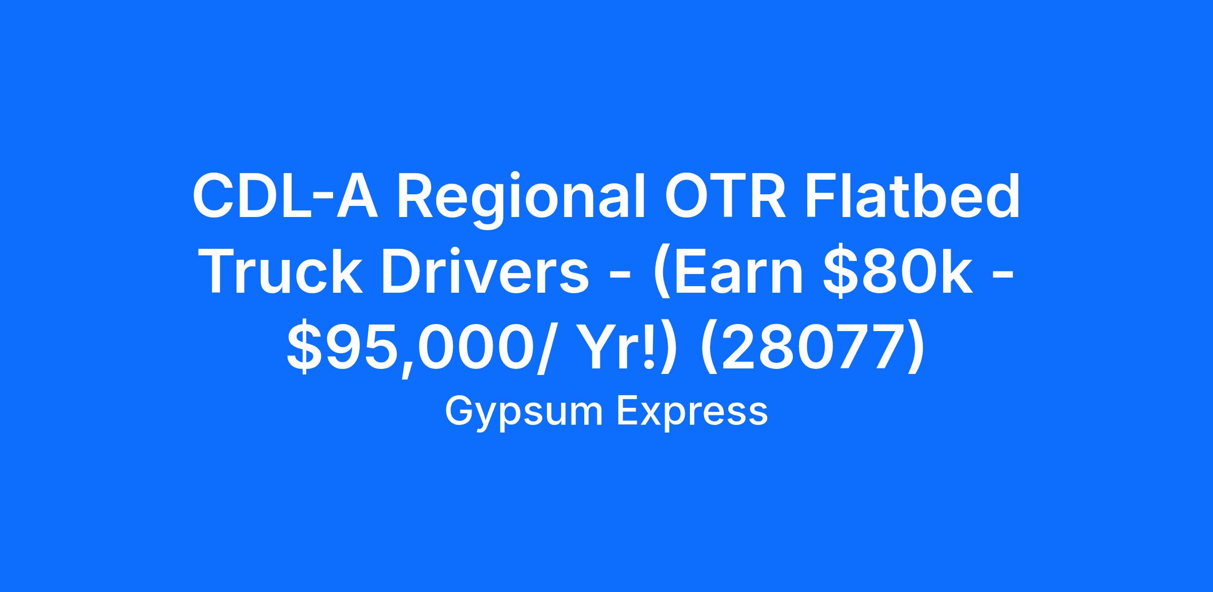 CDL-A Regional OTR Flatbed Truck Drivers - (Earn $80k - $95,000/ Yr!) (28077)