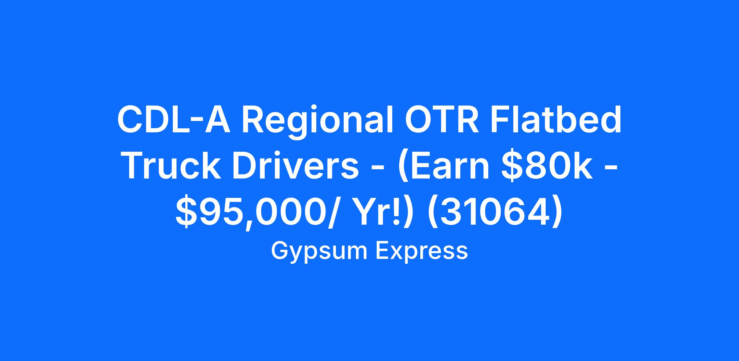 CDL-A Regional OTR Flatbed Truck Drivers - (Earn $80k - $95,000/ Yr!) (31064)