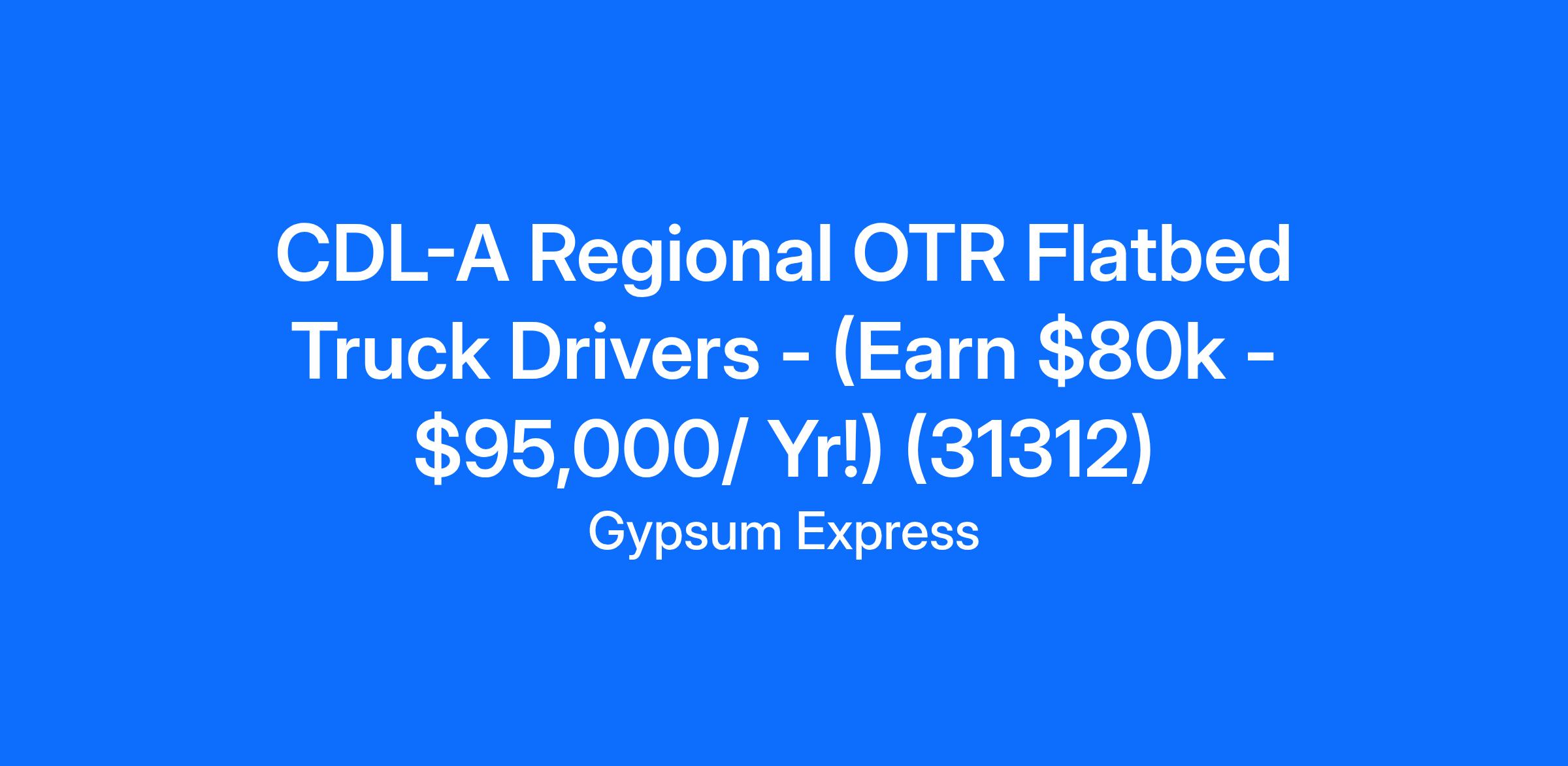 CDL-A Regional OTR Flatbed Truck Drivers - (Earn $80k - $95,000/ Yr!) (31312)