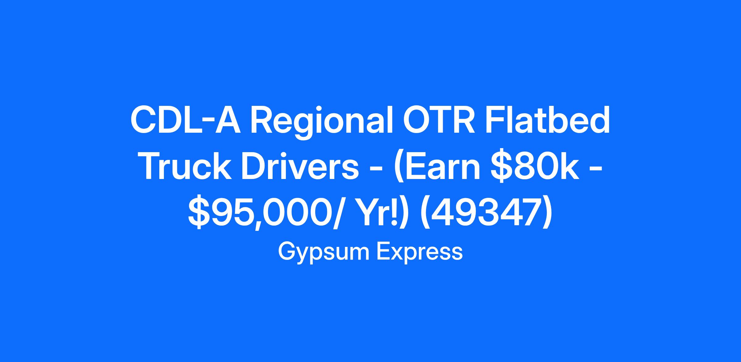 Gypsum Express is now hiring for Regional OTR CDL-A Flatbed Truck Drivers. Recent grads with no experience are welcome to apply!