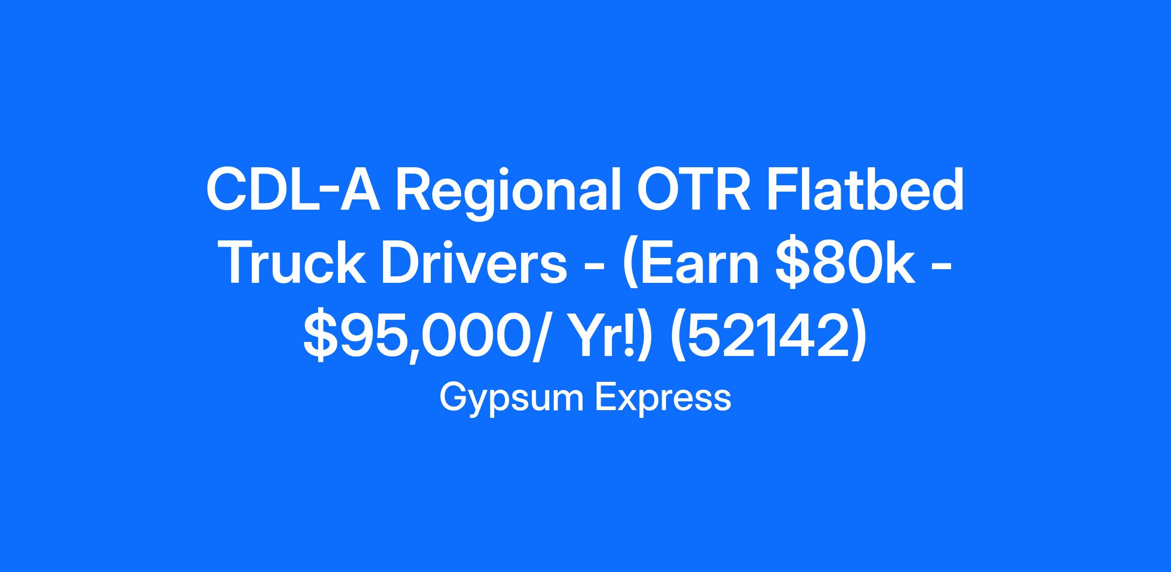 CDL-A Regional OTR Flatbed Truck Drivers - (Earn $80k - $95,000/ Yr!) (52142)