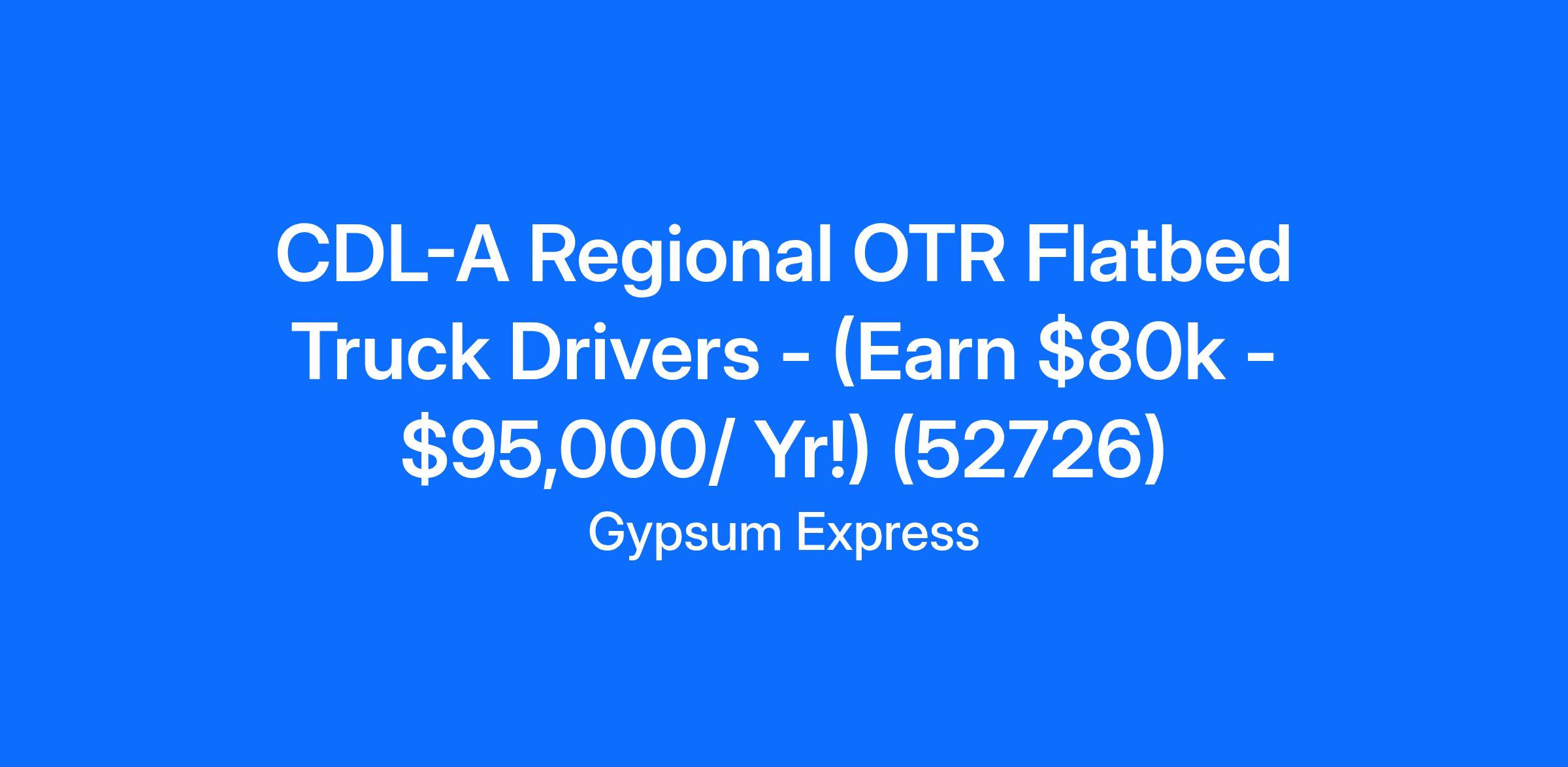 CDL-A Regional OTR Flatbed Truck Drivers - (Earn $80k - $95,000/ Yr!) (52726)