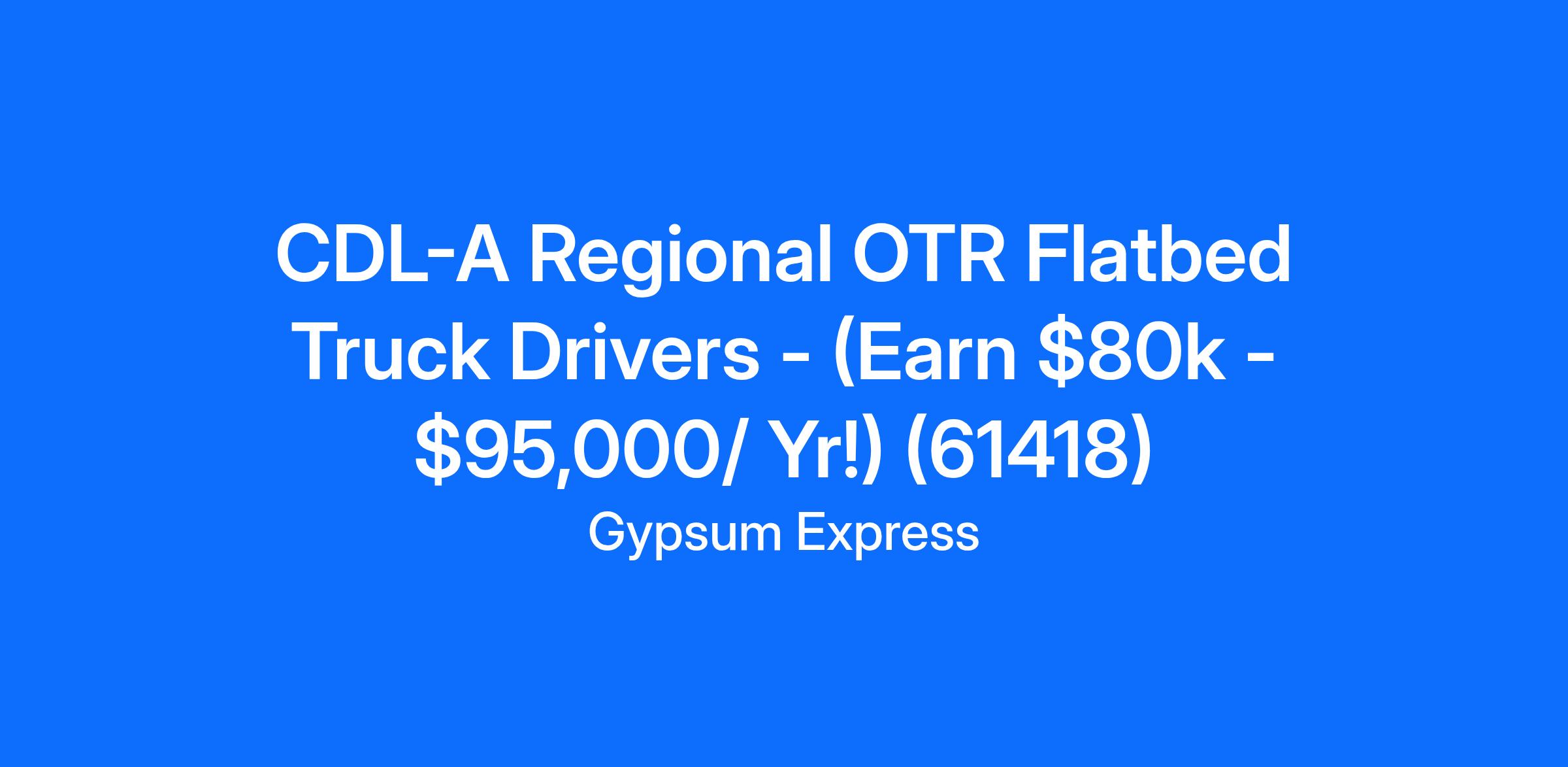 CDL-A Regional OTR Flatbed Truck Drivers - (Earn $80k - $95,000/ Yr!) (61418)