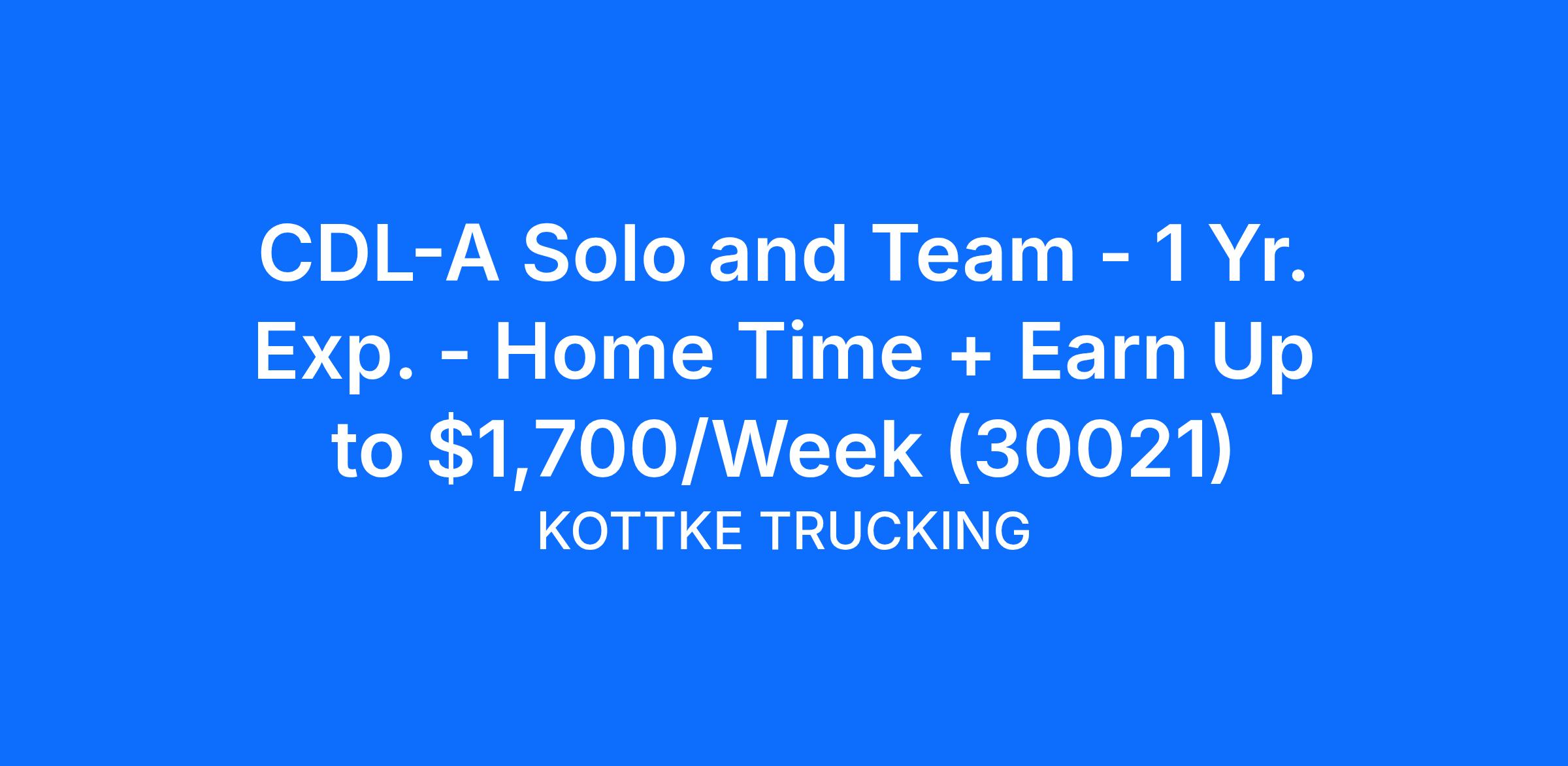 CDL-A Solo and Team - 1 Yr. Exp. - Home Time + Earn Up to $1,700/Week (30021)