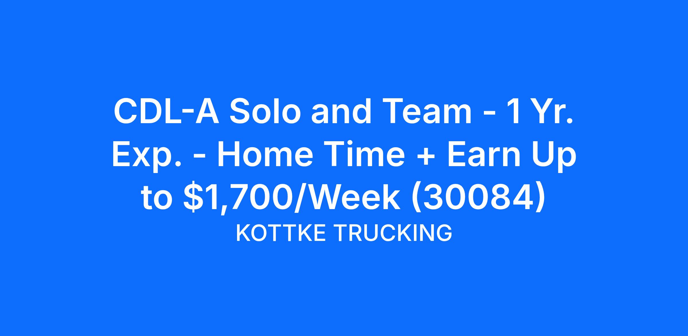 CDL-A Solo and Team - 1 Yr. Exp. - Home Time + Earn Up to $1,700/Week (30084)