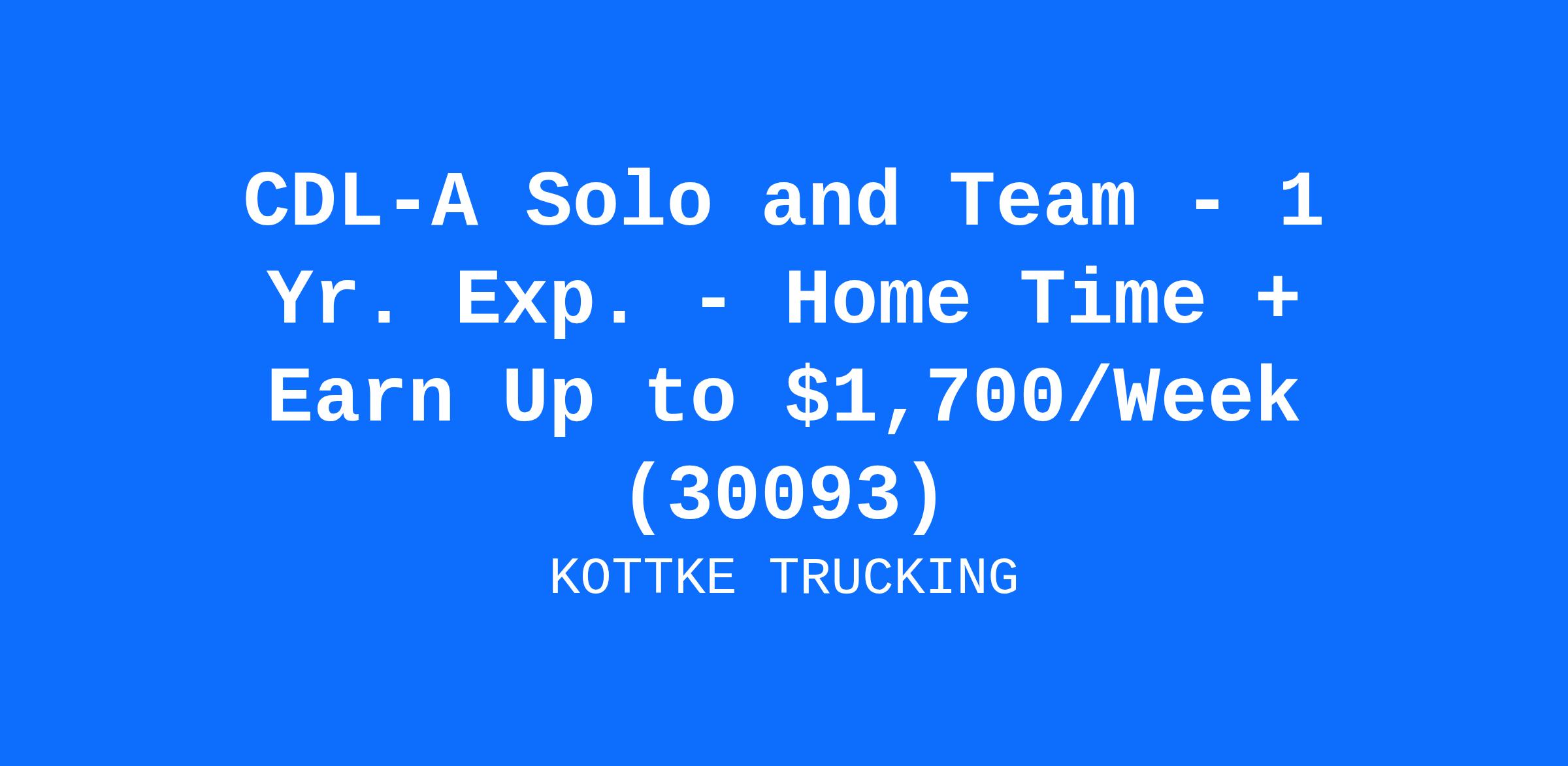 CDL-A Solo and Team - 1 Yr. Exp. - Home Time + Earn Up to $1,700/Week (30093)