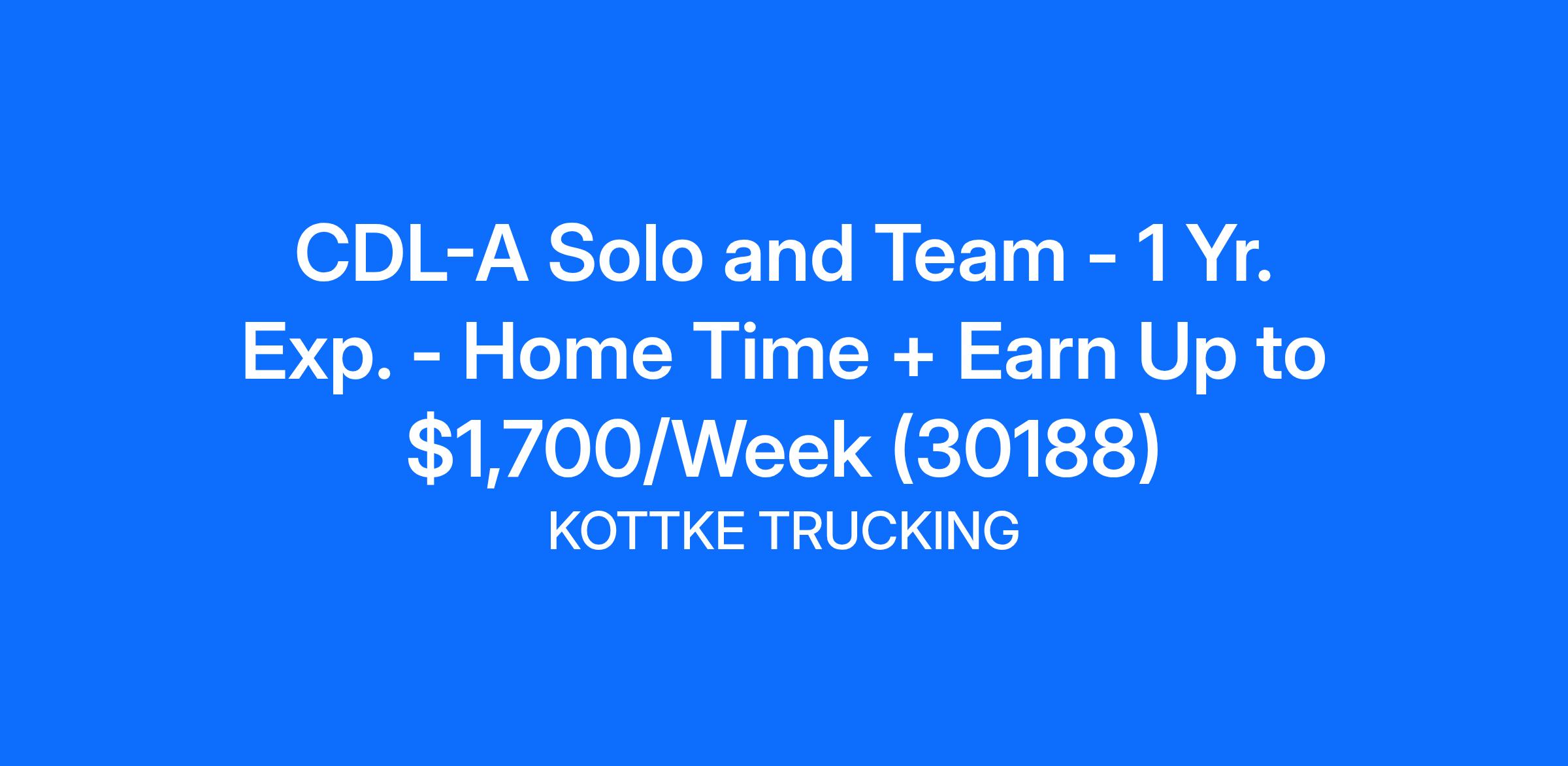 CDL-A Solo and Team - 1 Yr. Exp. - Home Time + Earn Up to $1,700/Week (30188)