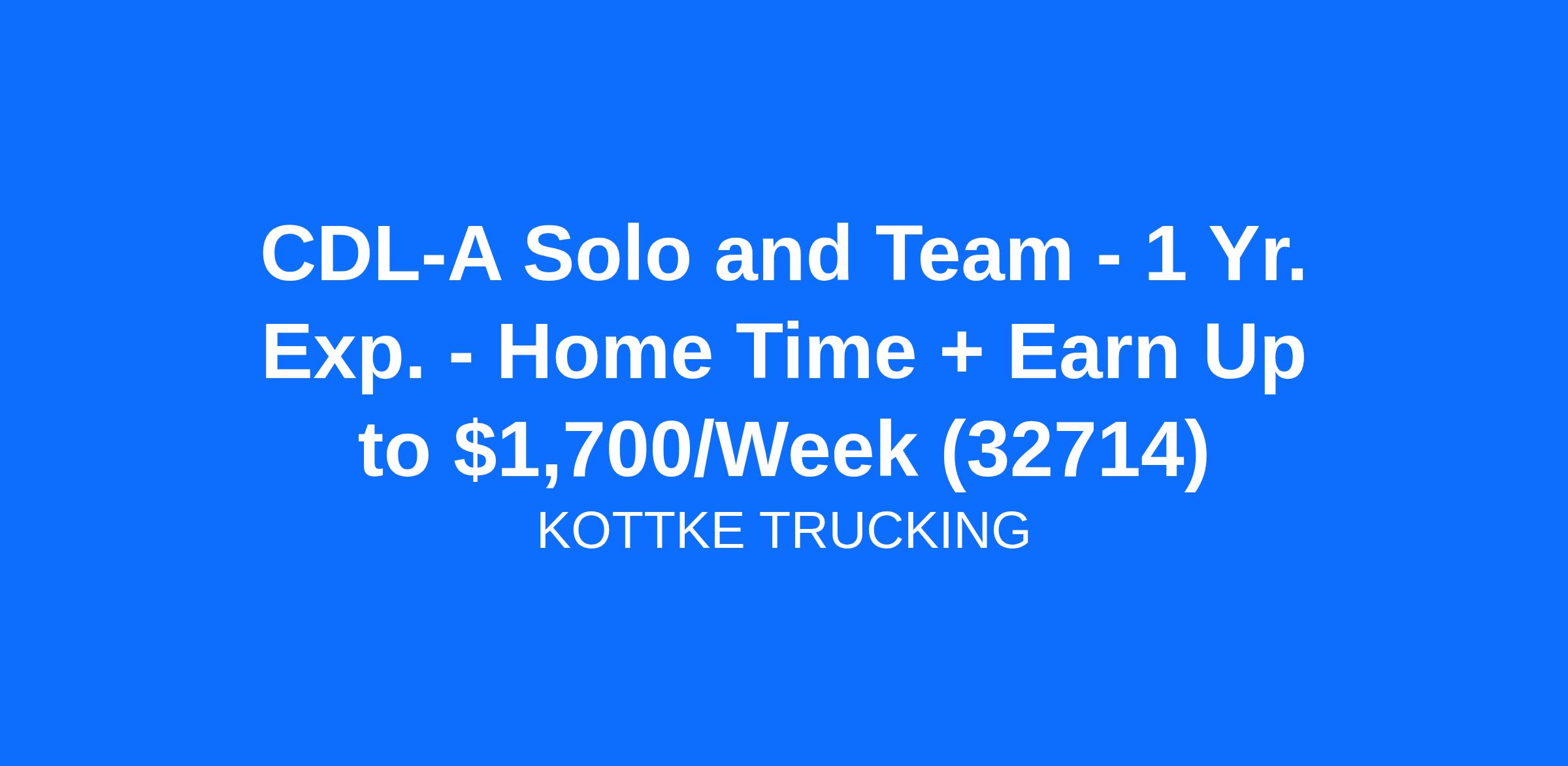 CDL-A Solo and Team - 1 Yr. Exp. - Home Time + Earn Up to $1,700/Week (32714)