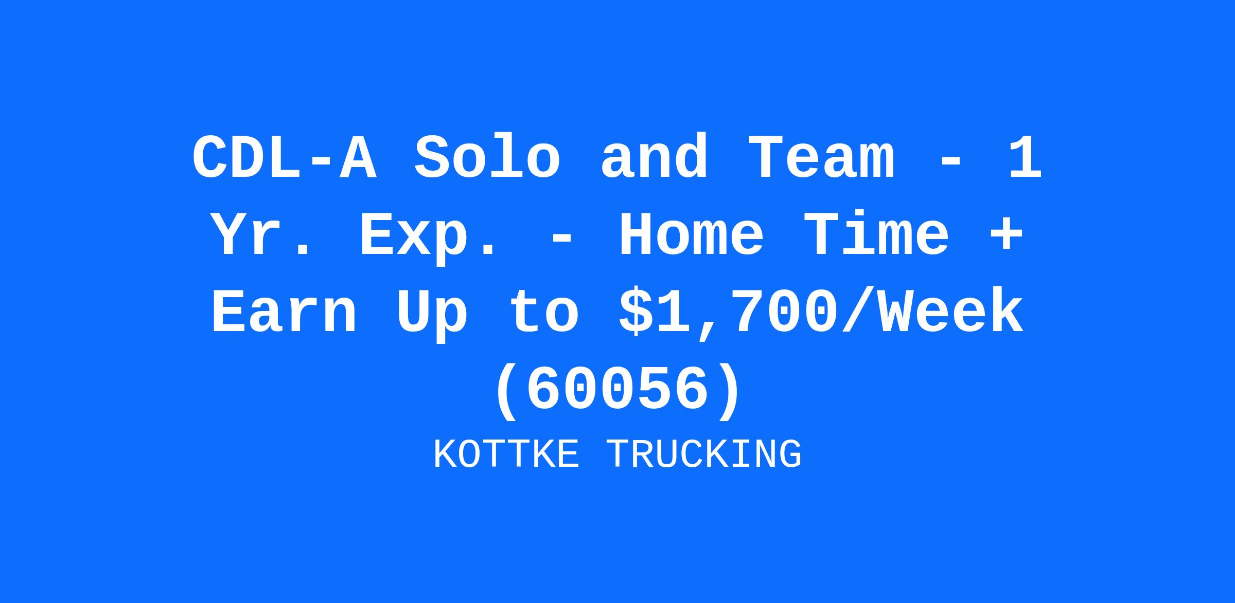CDL-A Solo and Team - 1 Yr. Exp. - Home Time + Earn Up to $1,700/Week (60056)