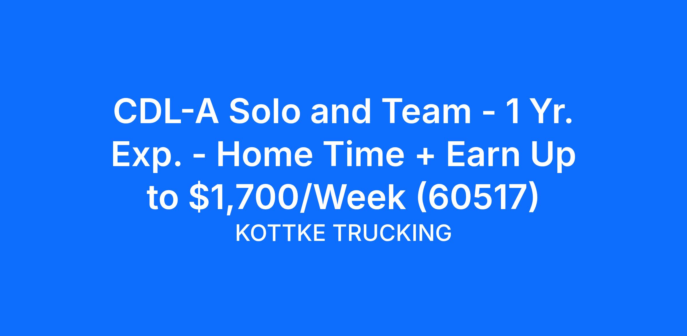 CDL-A Solo and Team - 1 Yr. Exp. - Home Time + Earn Up to $1,700/Week (60517)