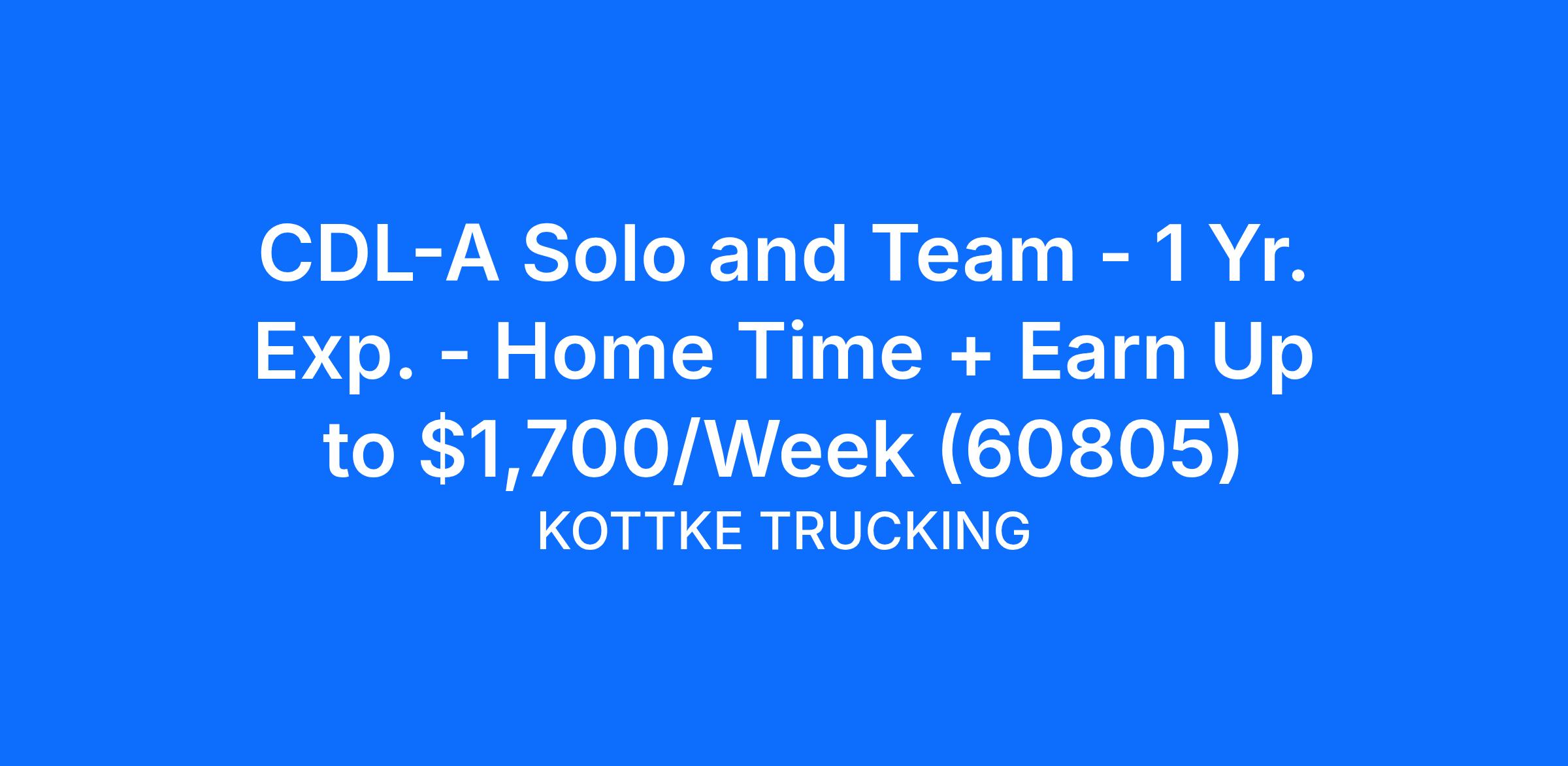 CDL-A Solo and Team - 1 Yr. Exp. - Home Time + Earn Up to $1,700/Week (60805)