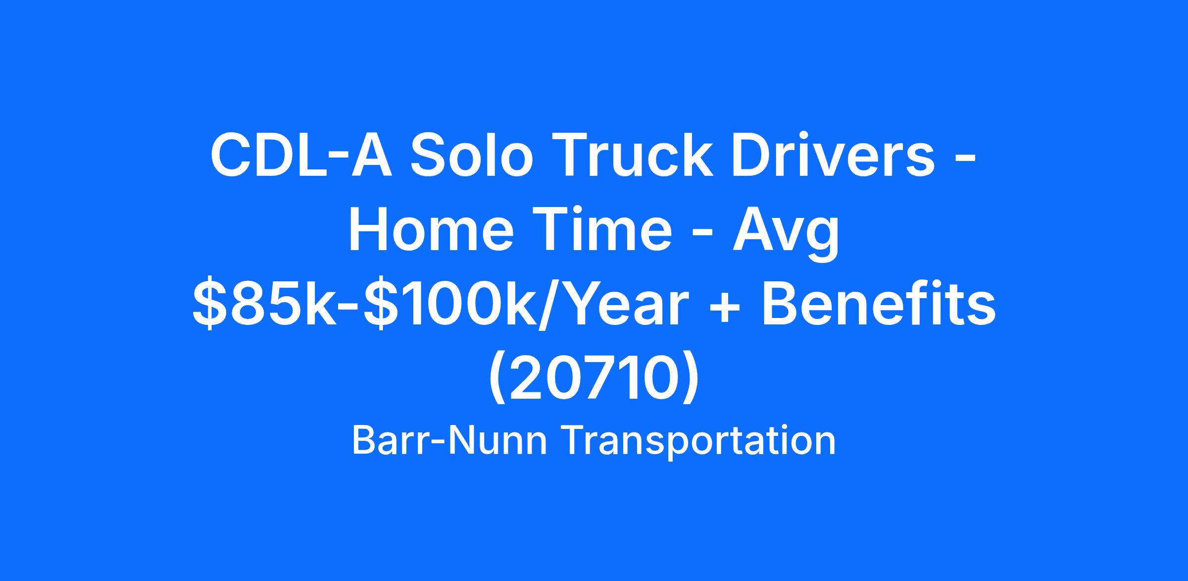 - Home time: in certain geographic areas, Barr-Nunn Transportation offers different options for solo drivers