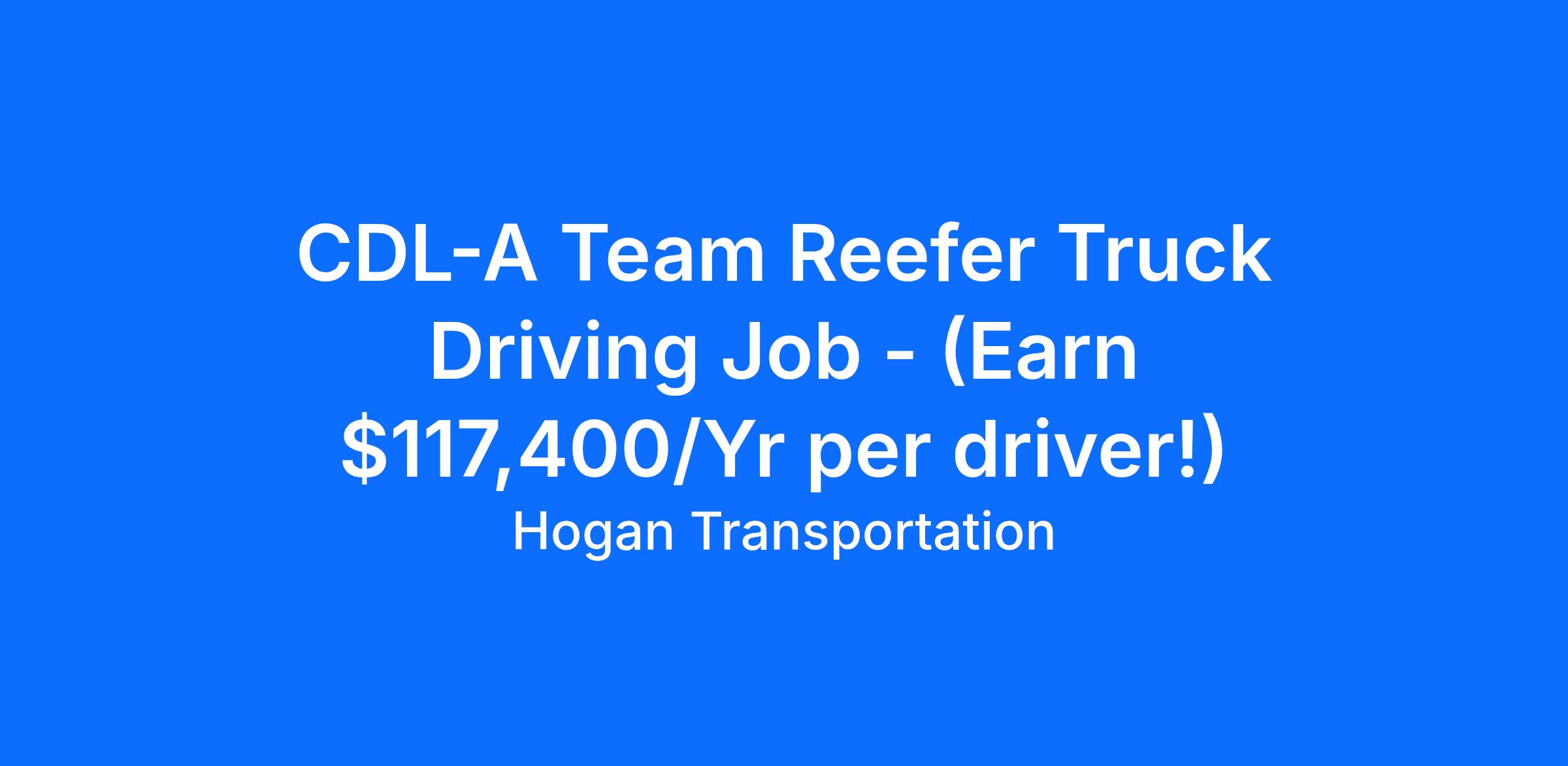 Team CDL-A Truck Drivers Hogan's- Earn $2,260 Weekly Per Driver ! Pay & Benefits: - $1.00/Mile Split + Stop Pay