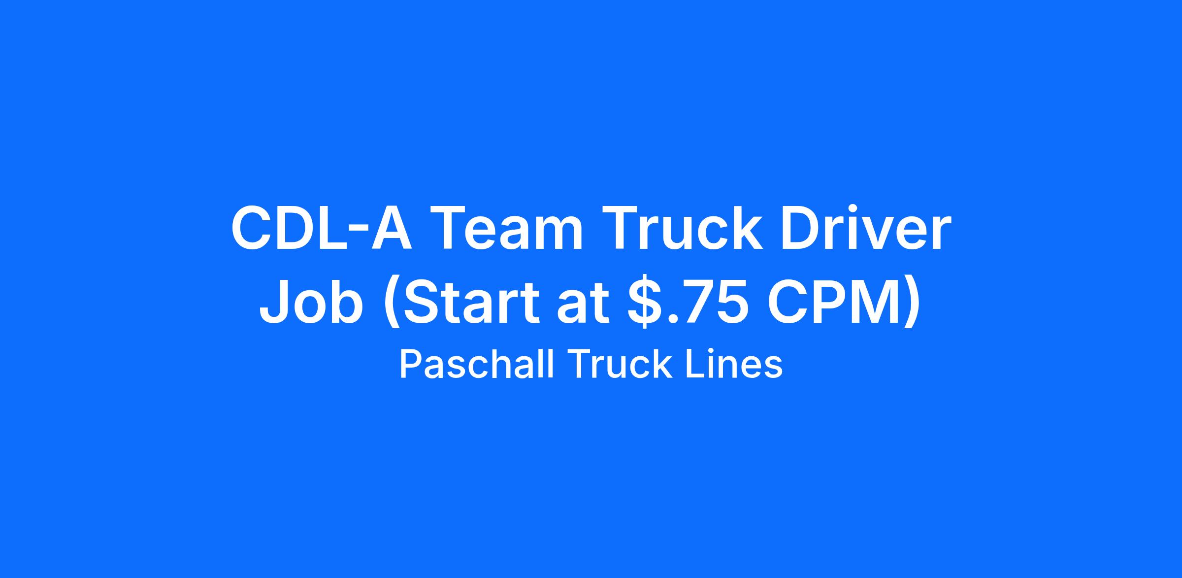 CDL-A Team Truck Driver Job (Start at $.75 CPM)