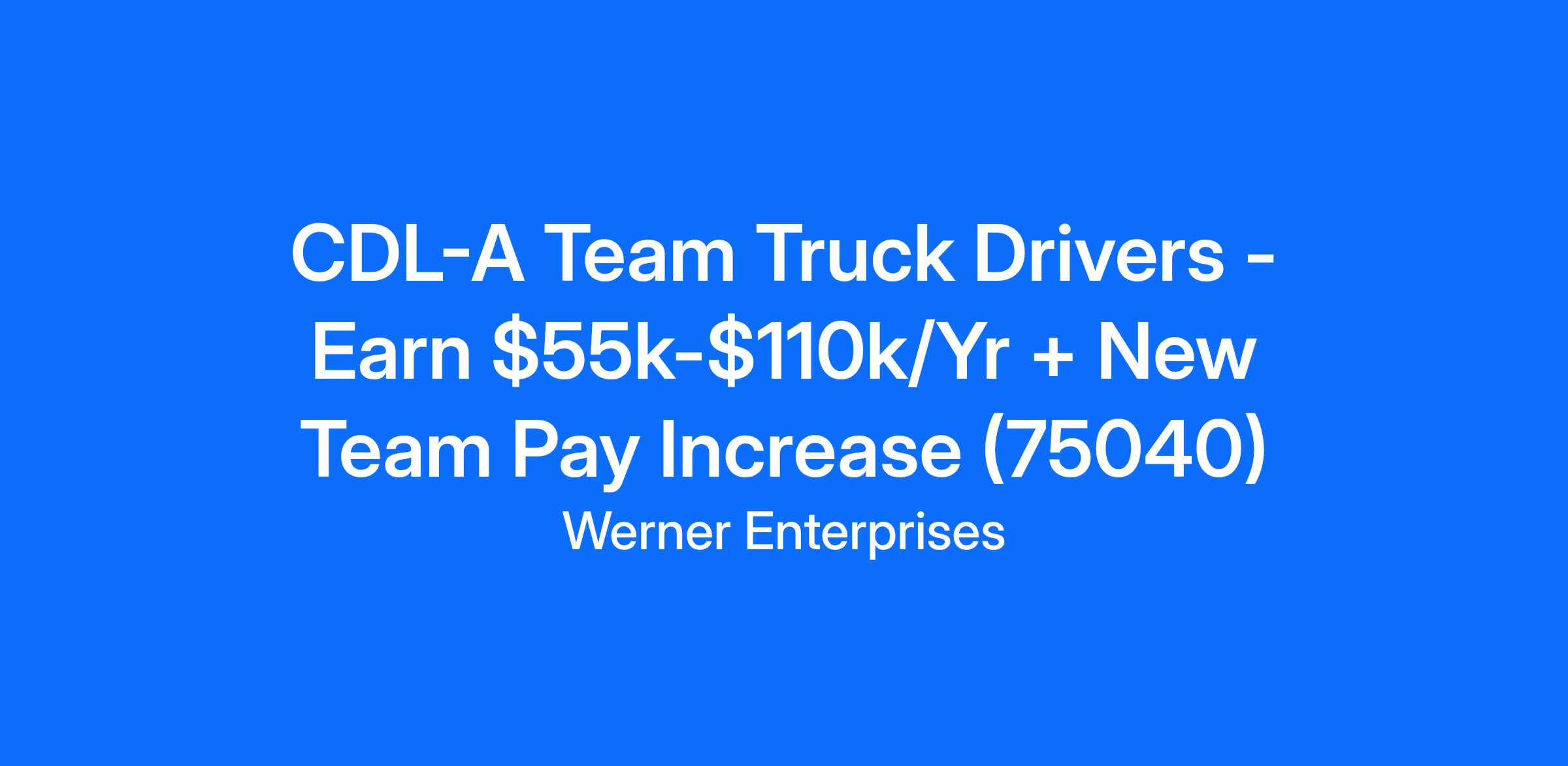 CDL-A Team Truck Drivers - Earn $55k-$110k/Yr + New Team Pay Increase (75040)