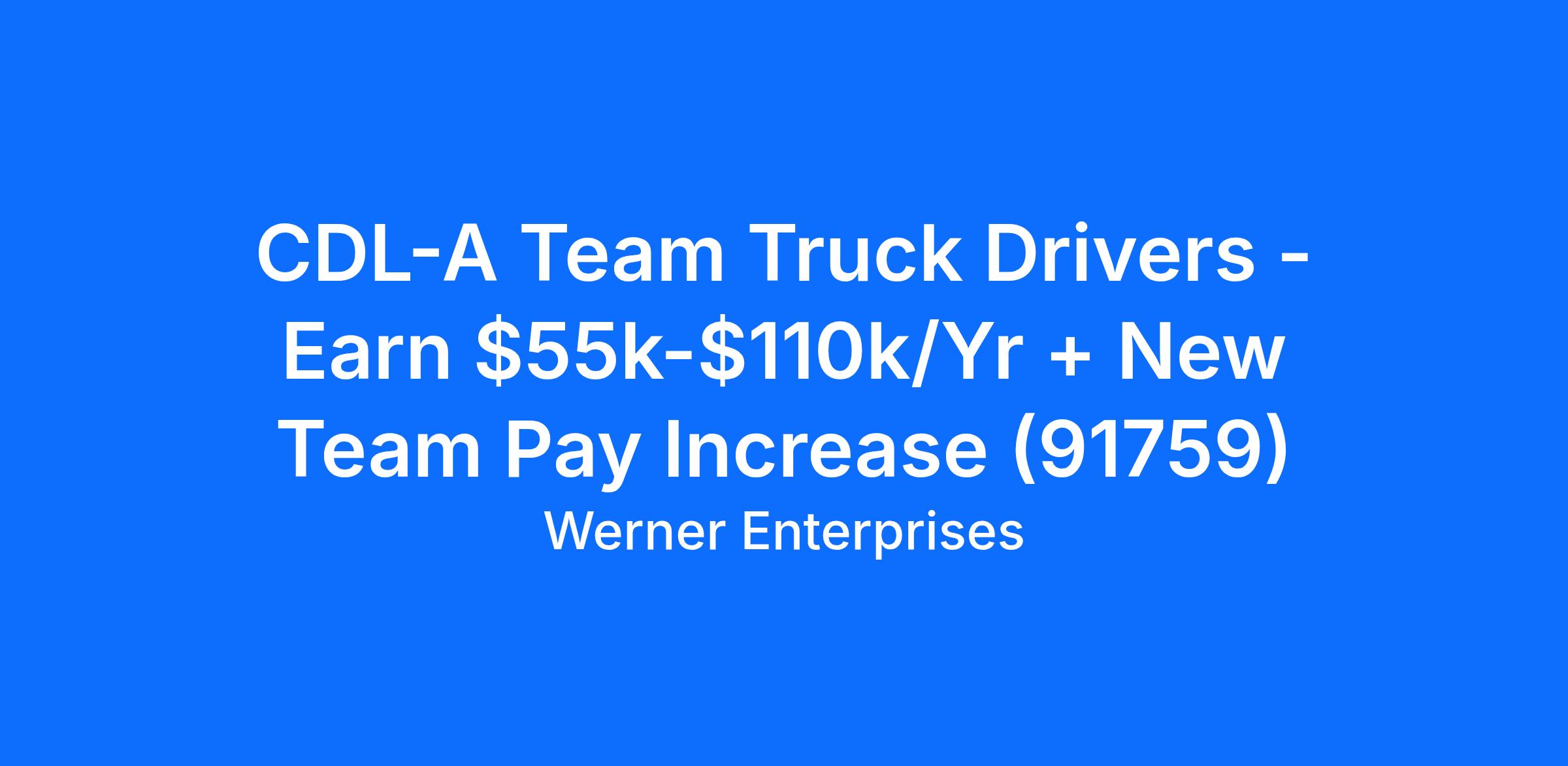 CDL-A Team Truck Drivers - Earn $55k-$110k/Yr + New Team Pay Increase (91759)