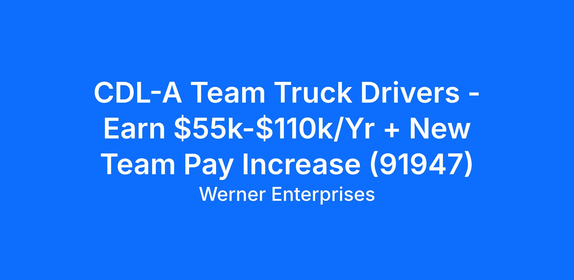 CDL-A Team Truck Drivers - Earn $55k-$110k/Yr + New Team Pay Increase (91947)
