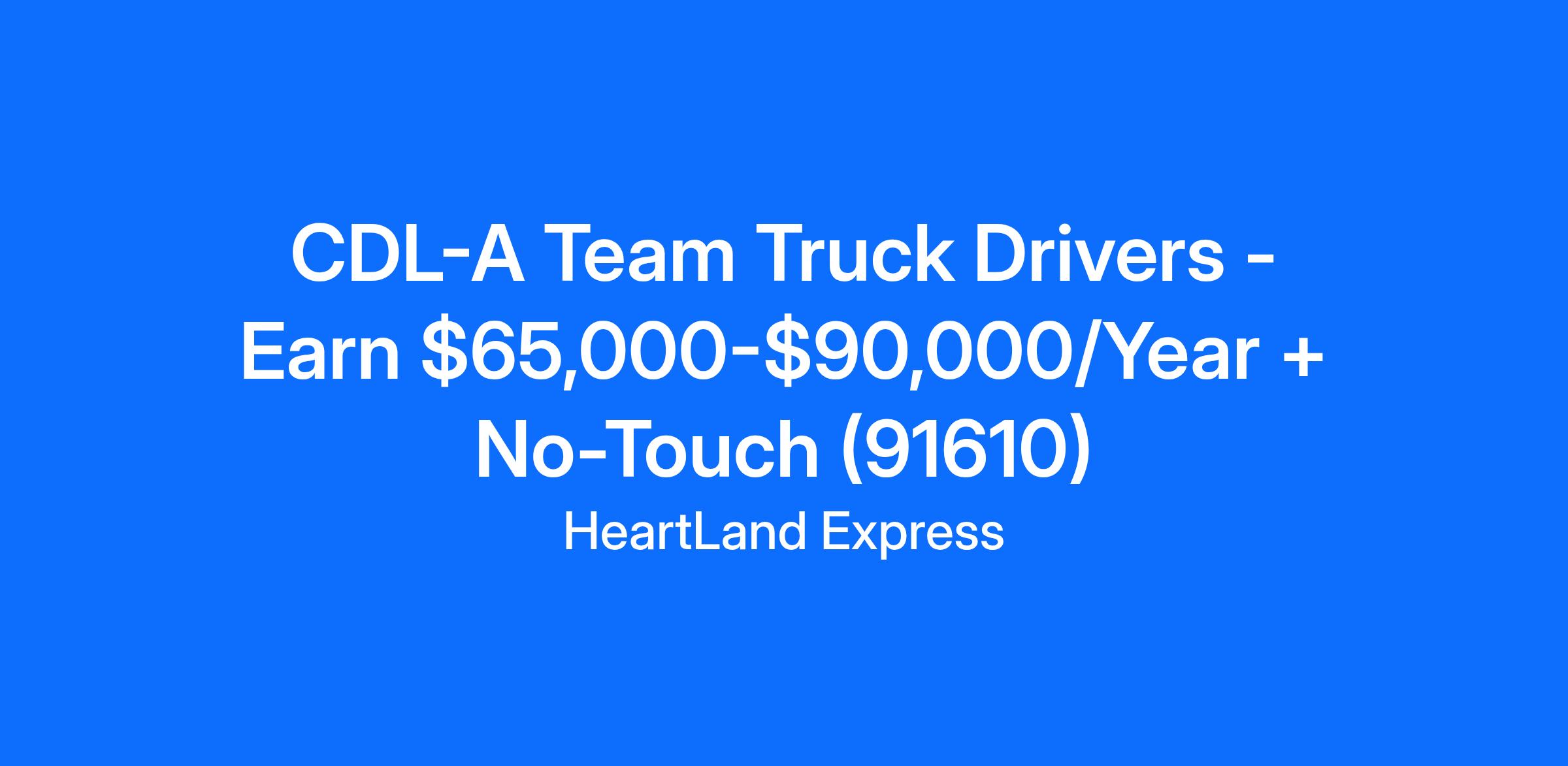 CDL-A Team Truck Drivers - Earn $65,000-$90,000/Year + No-Touch (91610)