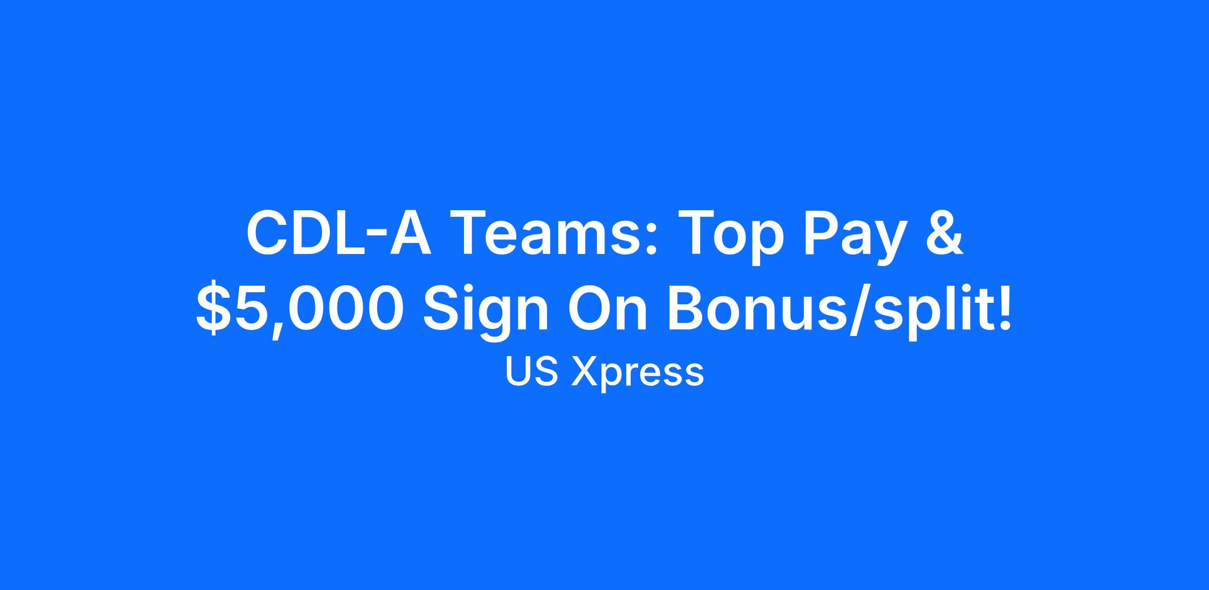 CDL-A Teams: Top Pay & $5,000 Sign On Bonus/split!Great Benefits! Only 3 Months Exp Required!Apply Online or Call 855-###-#### Today!**U.S Xpress is offering top pay for team drivers:** \- Sign On Bonus Available - $5\,000 per team \- 100% No Touch Freight \- Average 5\,000\+ miles per week - Home Time That Works for You \- Detention\, Layover and Breakdown pay \- Utilization Bonus: Our top teams hit the top bonus level! That's up to an extra 16 CPM split - every mile, every load! Don't have a team partner? We will help you find the right partner with our TEAM match program! Or make your own team! Now's the time to bring on a family member or friend to be your teammate on the road! Ask about our sponsorship program.Benefits: