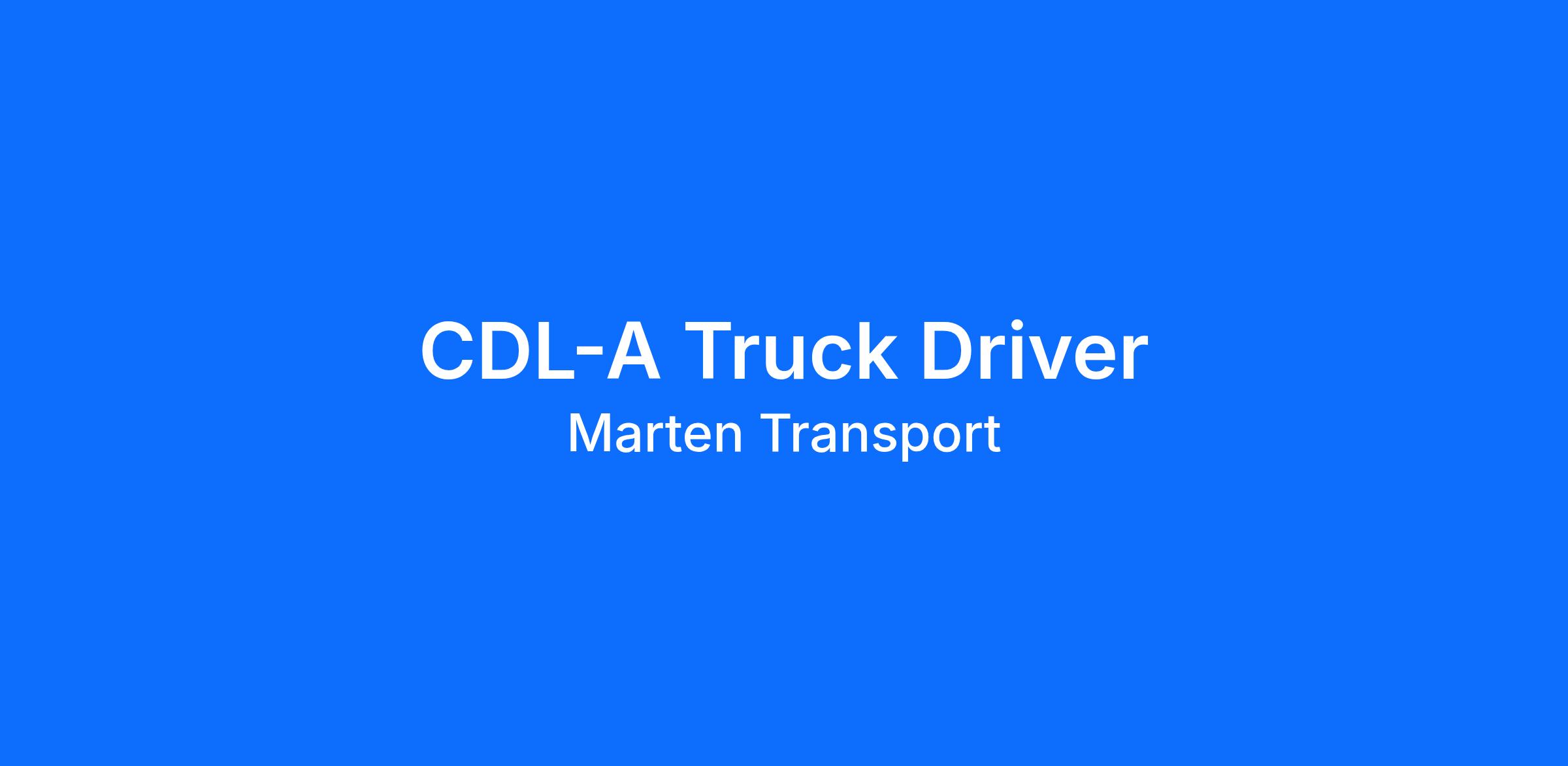 CDL-A Truck Drivers- Join a 2-Time TCA Elite FleetAre you looking for a CDL-A truck driving job with reliable miles and consistent home time? Marten Transport, a back-to-back TCA Elite Fleet honoree (2025 and 2026), offers professional drivers the opportunity to run with a stable, financially independent carrier that puts drivers first.From dependable schedules to competitive pay and modern equipment, Marten continues to set the standard for what drivers should expect from a carrier.Advantages and earnings include: