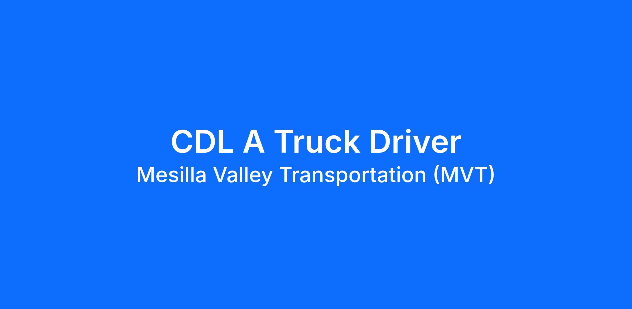 Immediately Hiring Class-A CDL Truck Drivers for our Regional Lanes! Mesilla Valley Transportation (MVT) is looking for truck drivers that are passionate about being on the road and understand that safety and delivering on time are critical.