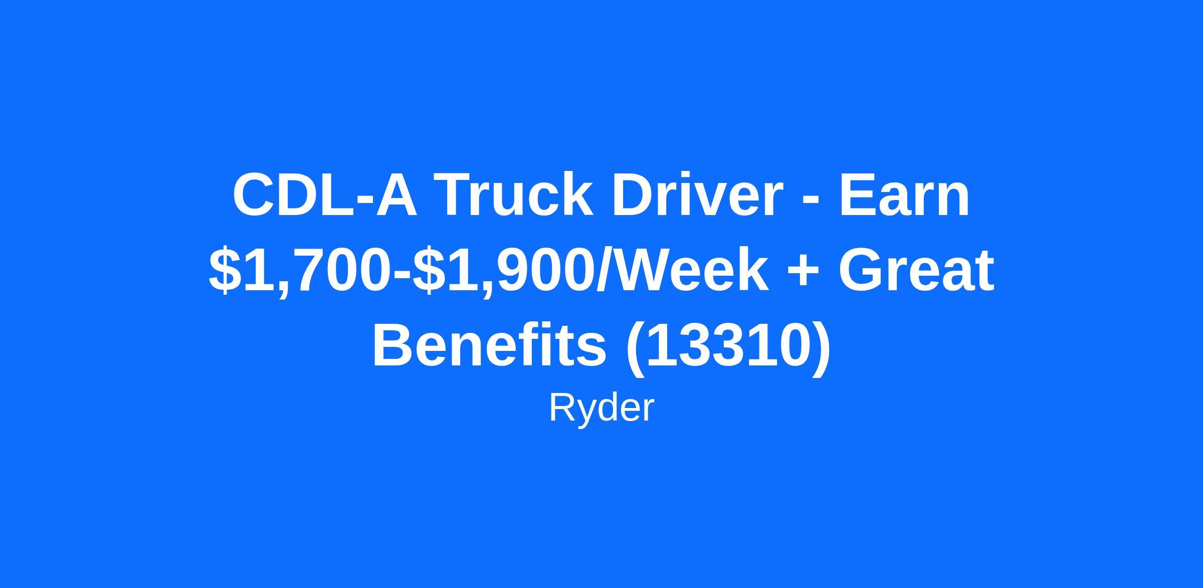 Ryder is Now Hiring Regional CDL-A Truck Drivers in Canastota, NY