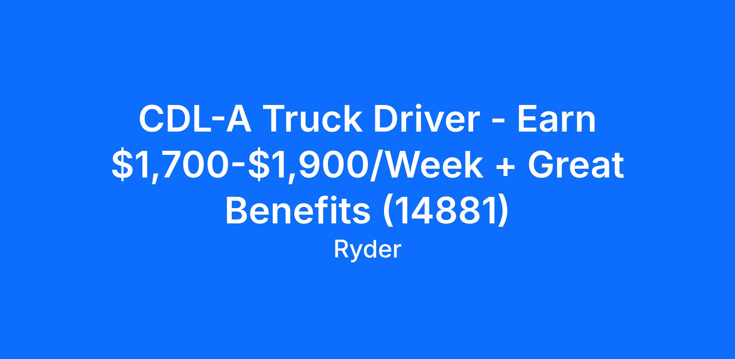 Ryder is Now Hiring Regional CDL-A Truck Drivers in Canastota, NY