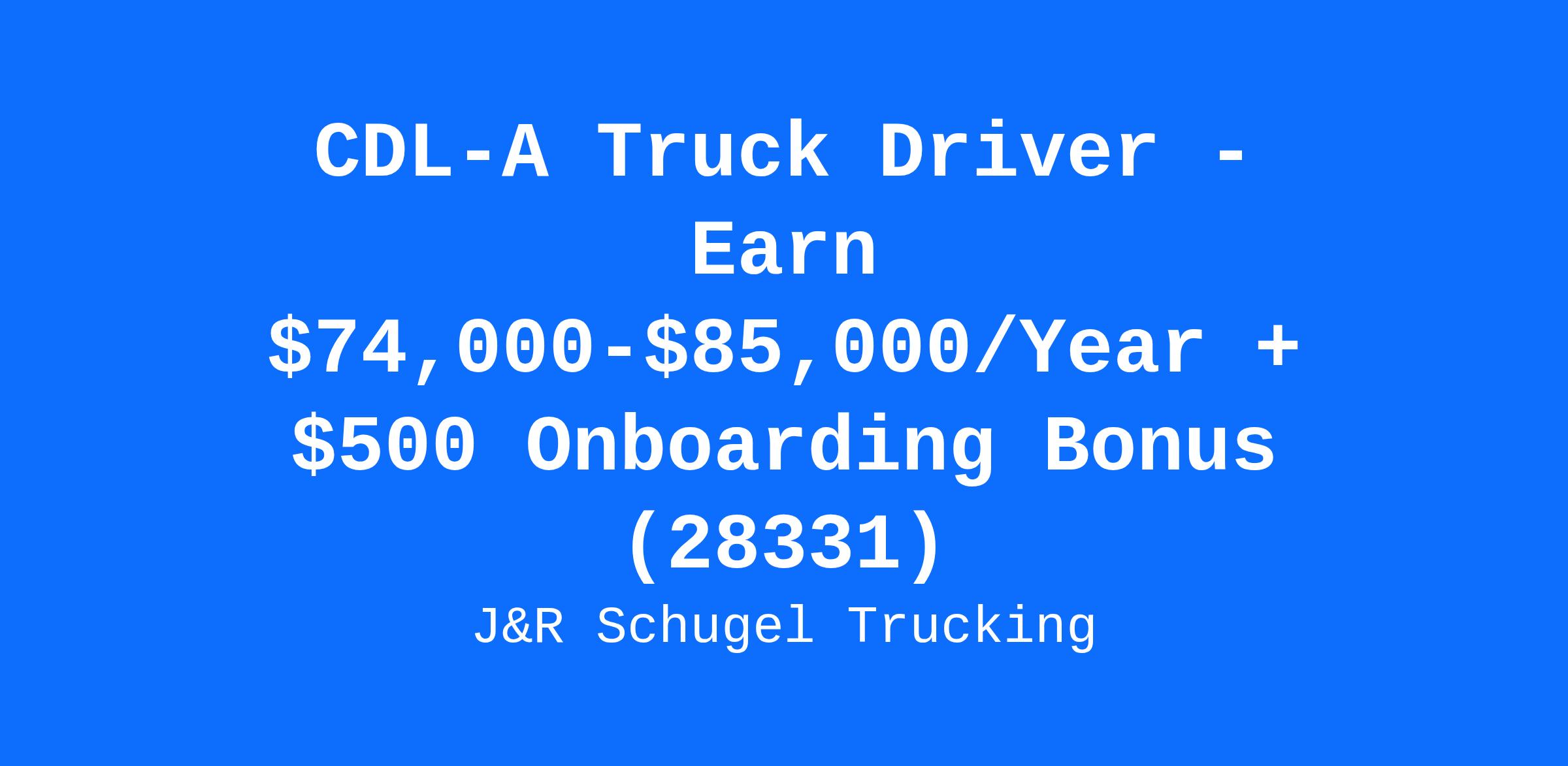 CDL-A Truck Driver - Earn $74,000-$85,000/Year + $500 Onboarding Bonus (28331)